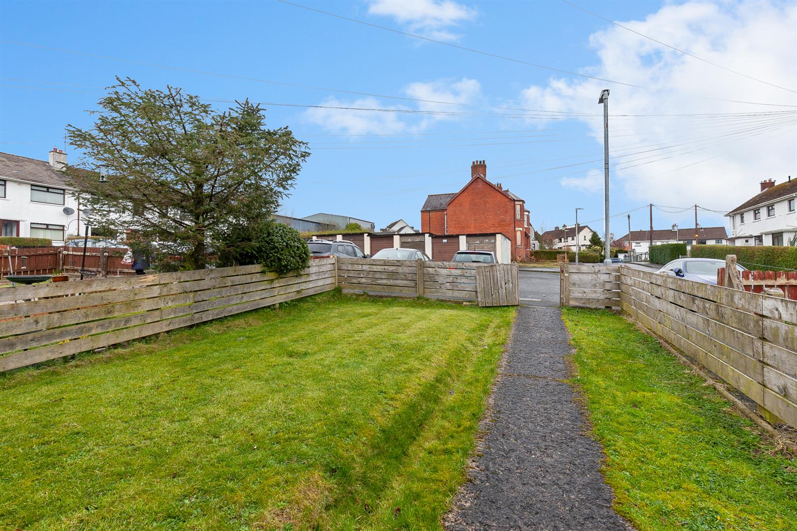 Enclosed front garden in lawn.