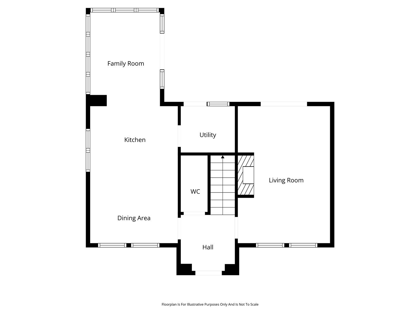 Triple aspect windows. Matching PVC French doors leading to rear garden. Tiled floor.
