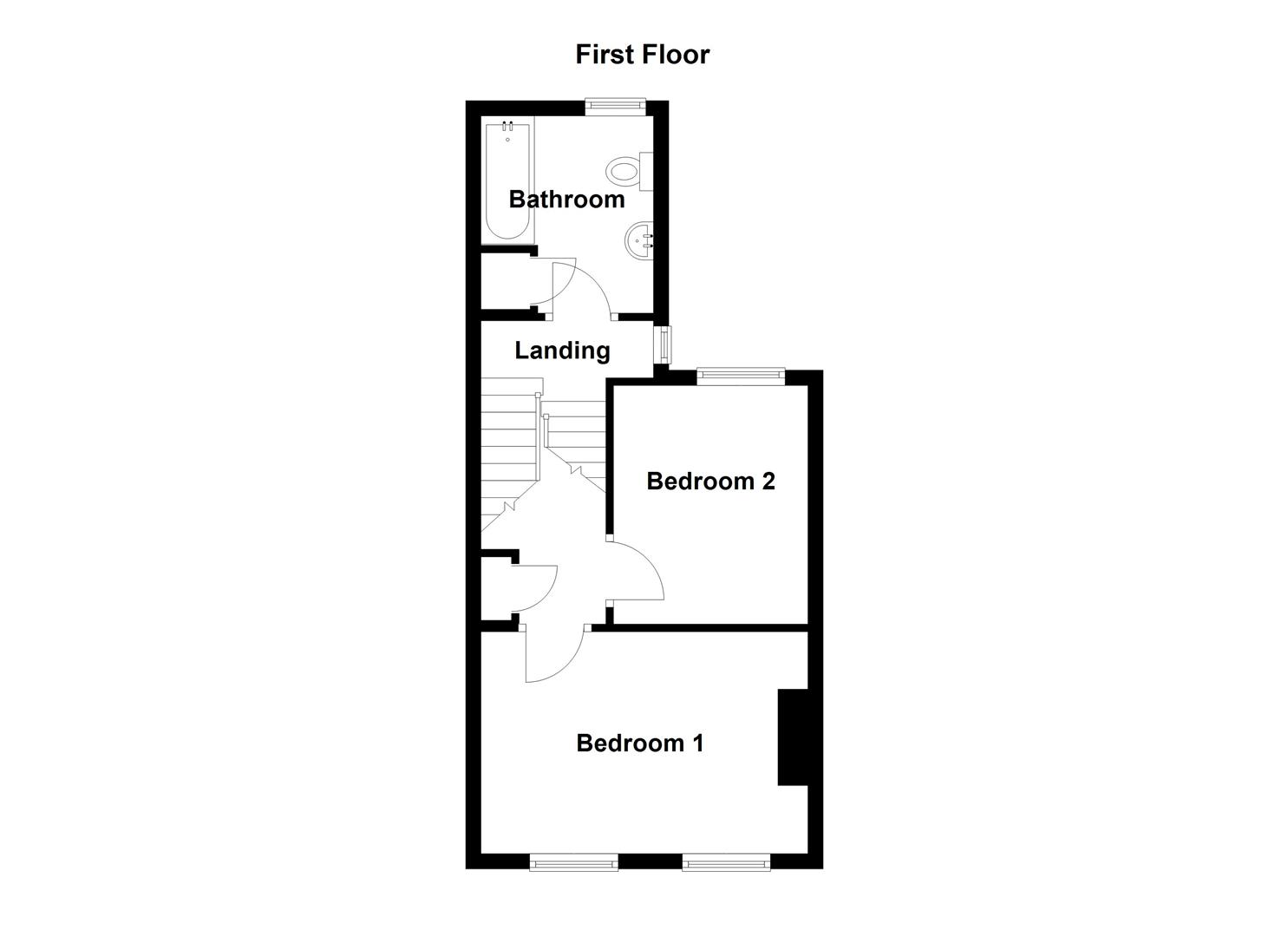 The property comprises entrance hall, lounge with open fire through dining room, fitted kitchen, two well proportioned first floor bedrooms, and bathroom with three piece suite.