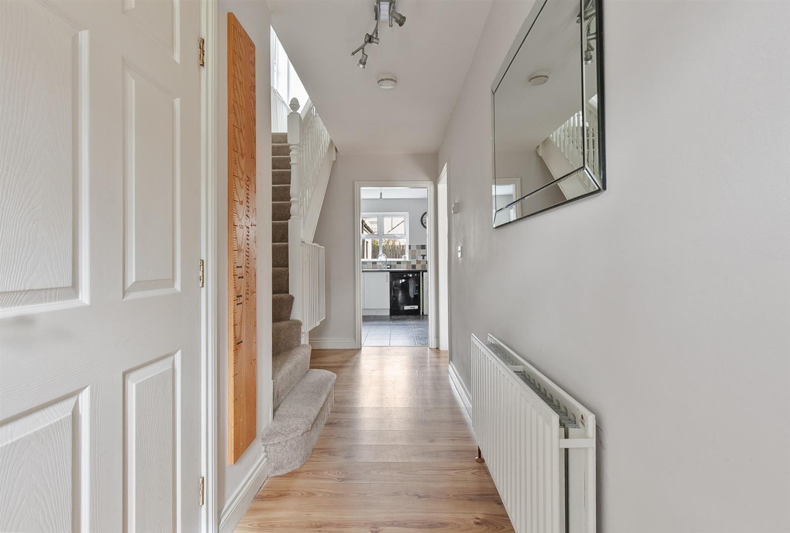 PVC double glazed front door. Wood laminate floor covering. Stairwell to first floor.
