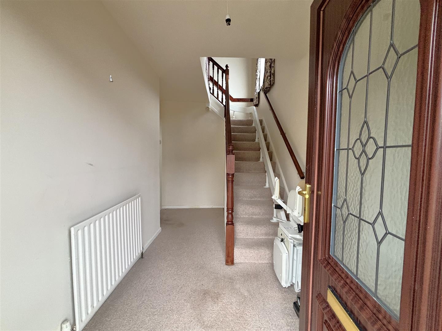 Upvc double glazed entrance door, understairs storage, panelled radiator.