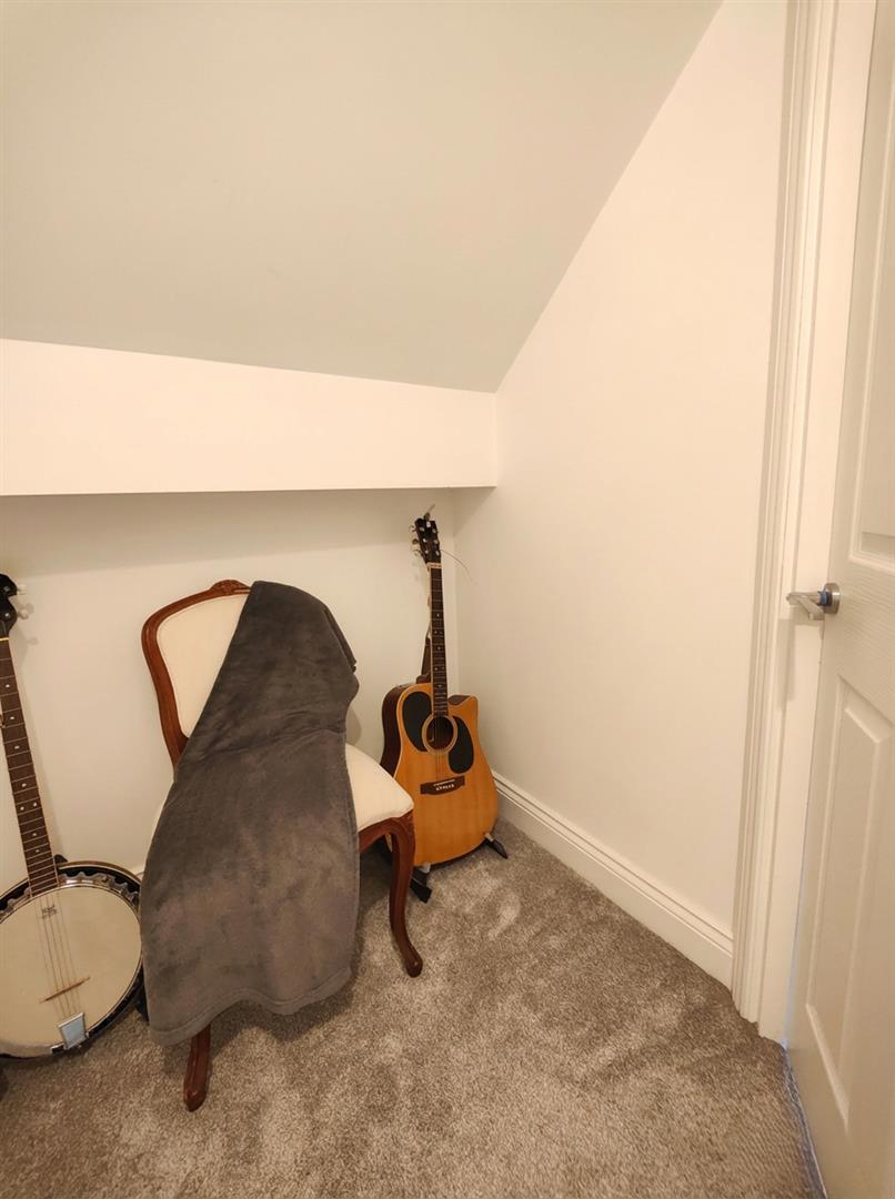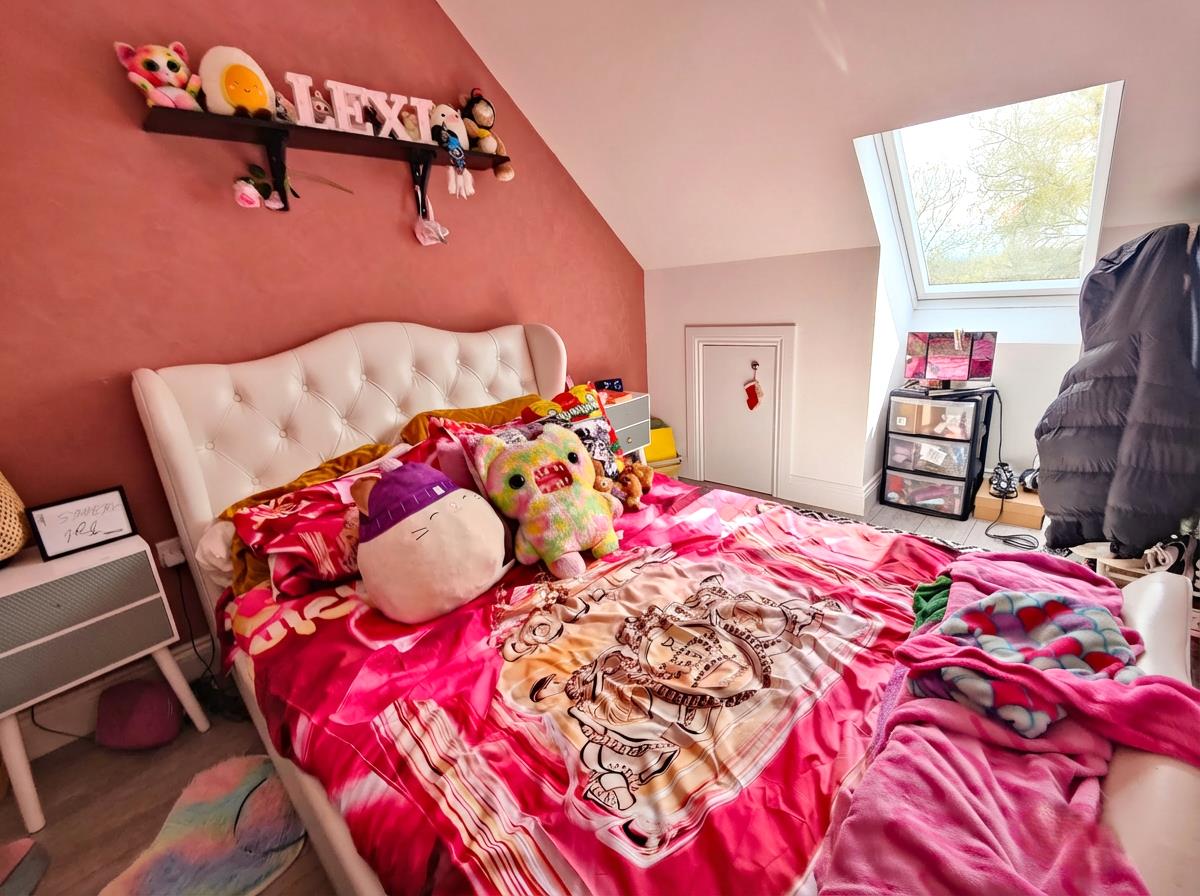 Velux roof light, wood laminate floor, panelled radiator, recessed lighting, under eaves storage.