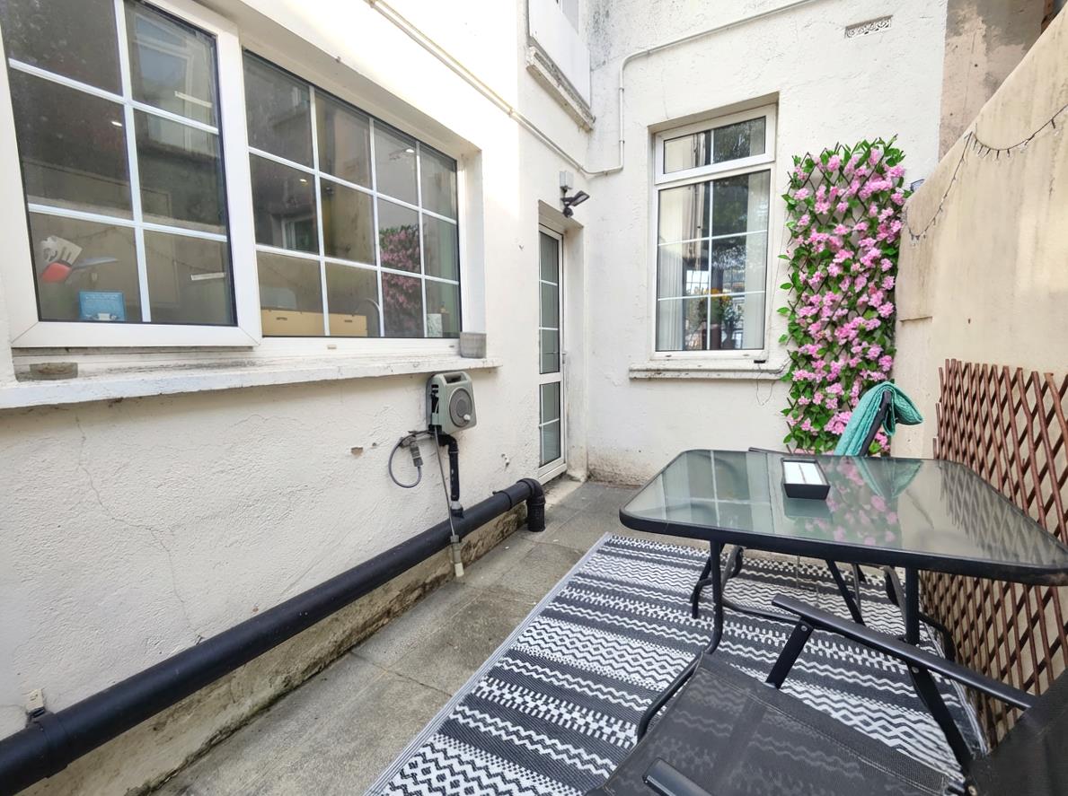 Forecourt and enclosed rear yard, outside tap.