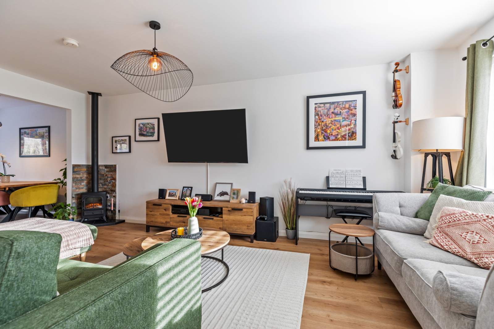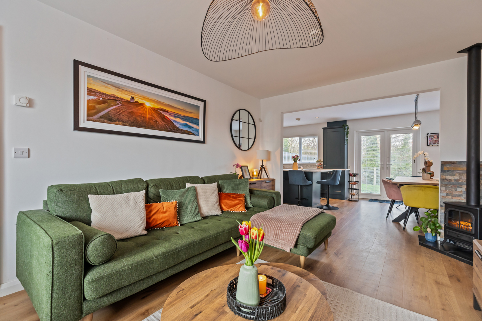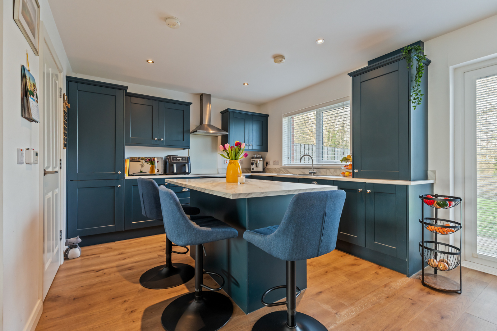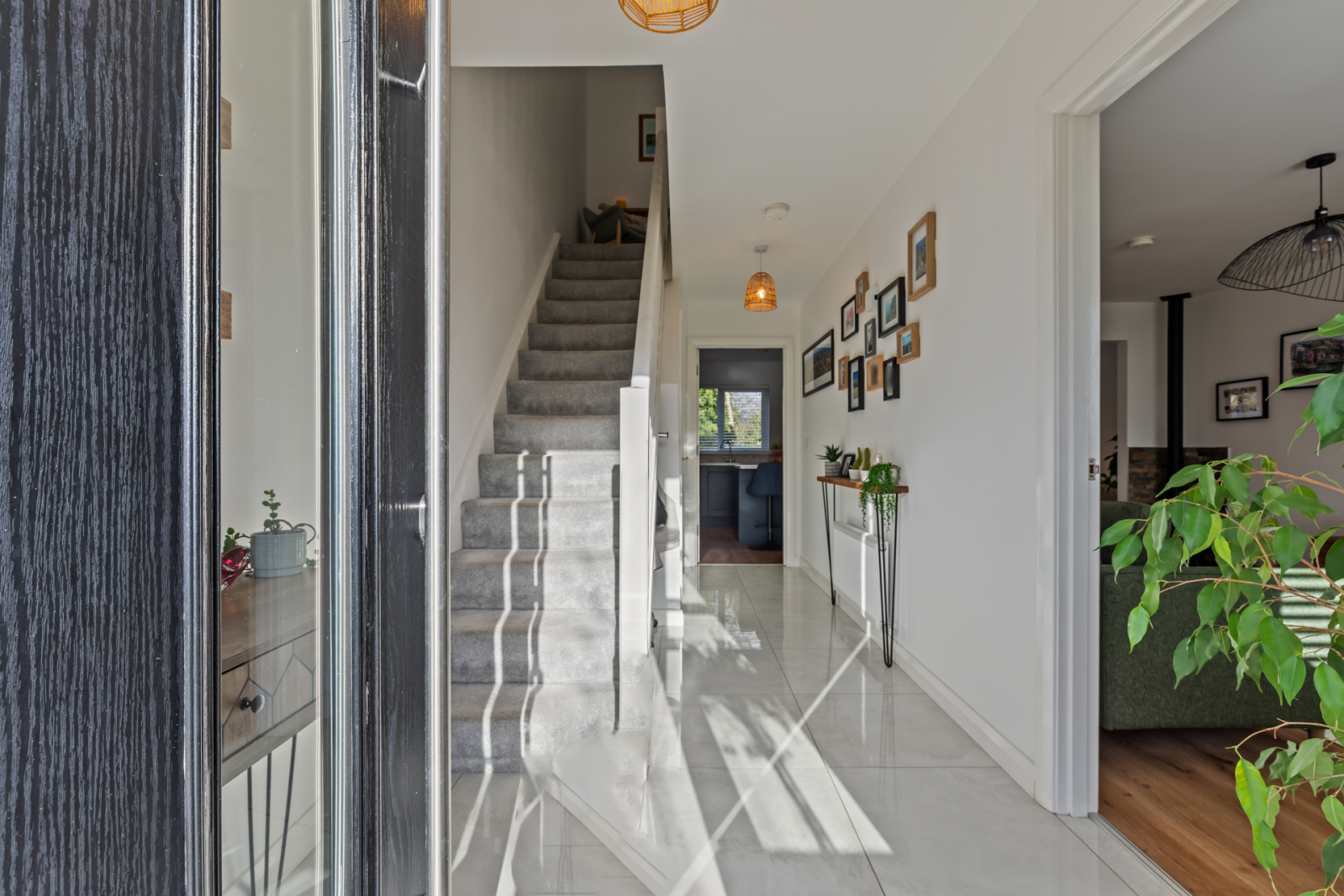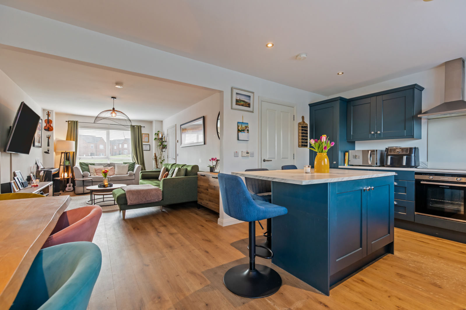 On entering the property, you are welcomed by a bright and inviting entrance hall which leads through to an impressive open-plan living, dining and contemporary kitchen area. This superb space is ideal for both everyday family living and entertaining, featuring a stylish fitted kitchen complete with a feature kitchen island. A convenient ground floor WC completes the ground floor layout.