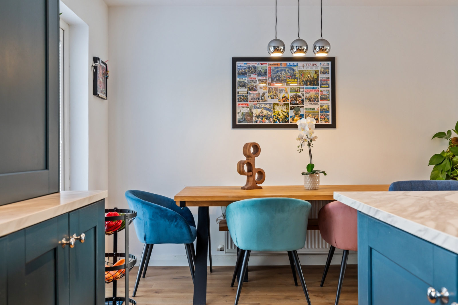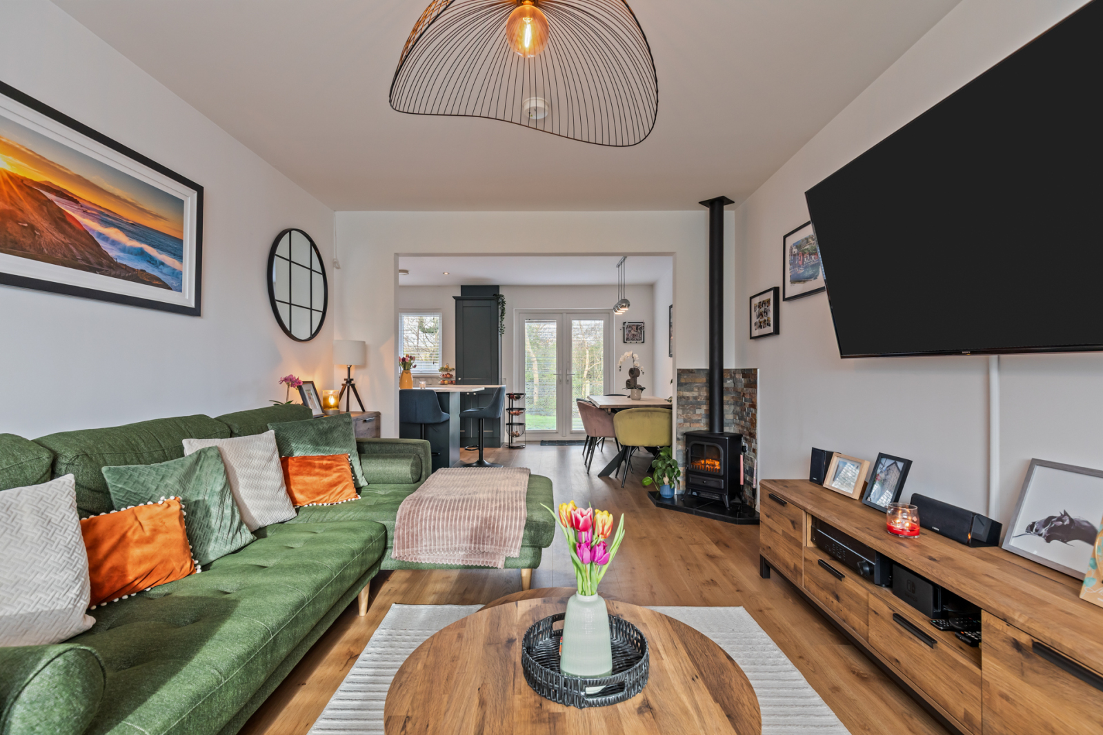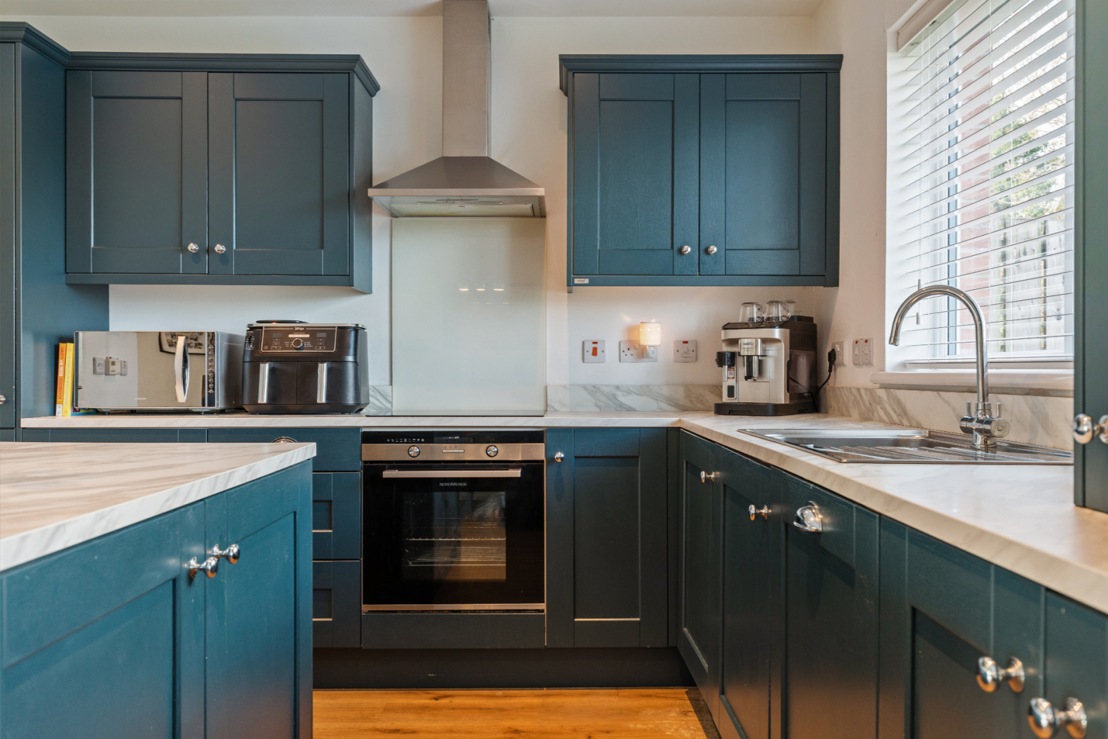 Comprises of an excellent range of high and low level wooden units, four ring induction hob with underneath oven and overhead stainless steel extractor unit. Single bowl sink unit with mixer tap, integrated dishwasher, integrated fridge and freezer, integrated washer and dryer, feature kitchen island for dining and hosting. Open plan to formal dining and patio doors to rear garden.