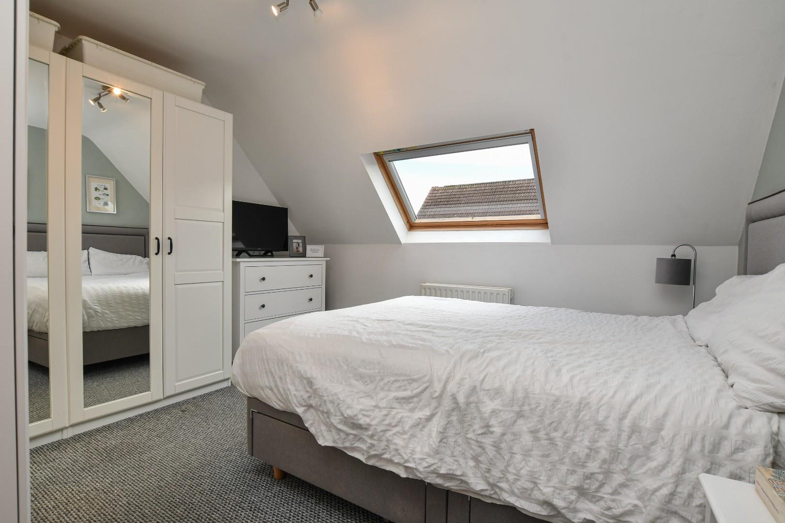 Set on a generous corner site, the property boasts a sweeping driveway that accommodates at least two vehicles, with the potential for additional parking with some minor adjustments. Upstairs, you will find a well-appointed family bathroom and three well-proportioned bedrooms, including a third bedroom featuring built-in storage, ensuring ample space for all your needs.