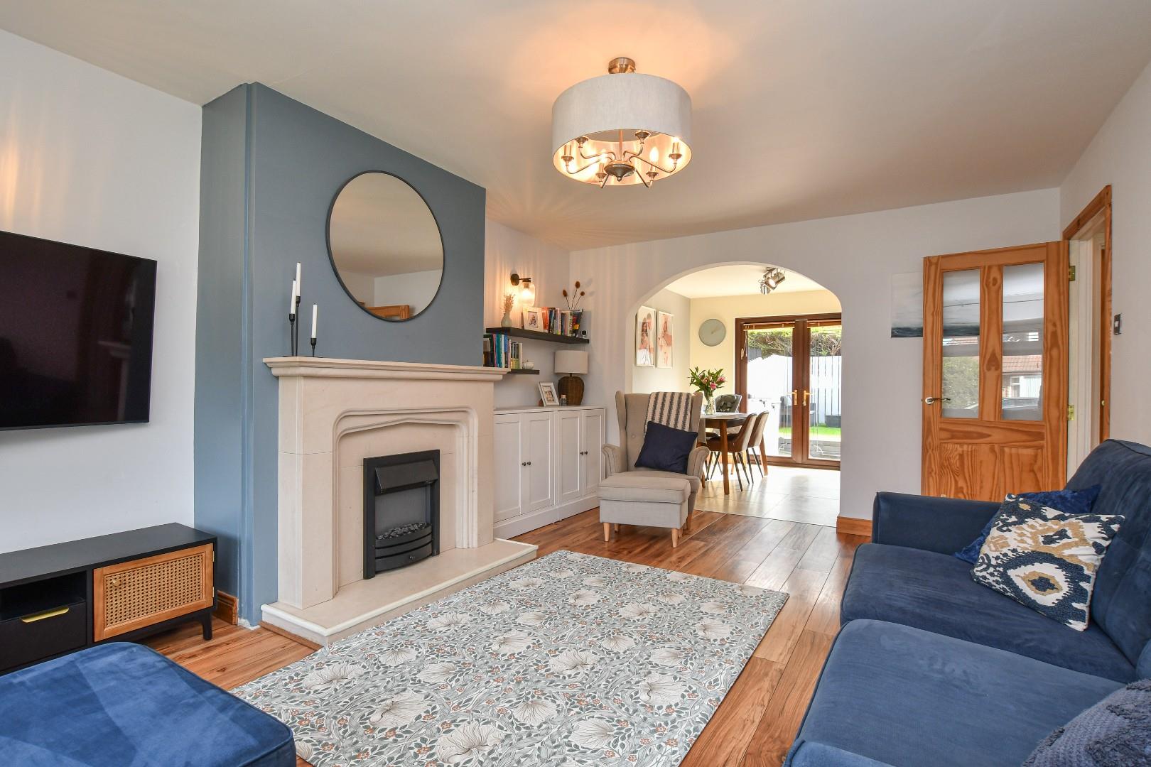 Located on Mossvale Avenue in the charming village of Ballygowan, this delightful three-bedroom semi-detached house offers a perfect blend of comfort and convenience. Upon entering, you are greeted by a welcoming hallway leading to the spacious living room flows seamlessly into an open-plan dining area and kitchen, creating an ideal space for family gatherings and entertaining. Located in the hallway is also a convenient downstairs WC. French doors from the dining room open up to an immaculate and generously sized enclosed back garden, perfect for enjoying sunny afternoons or hosting barbecues.