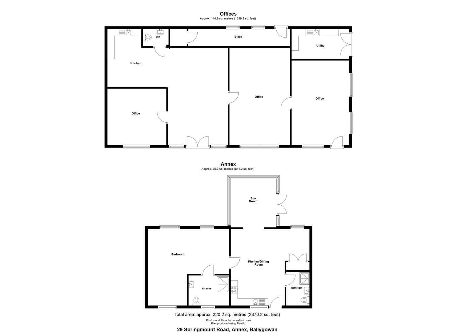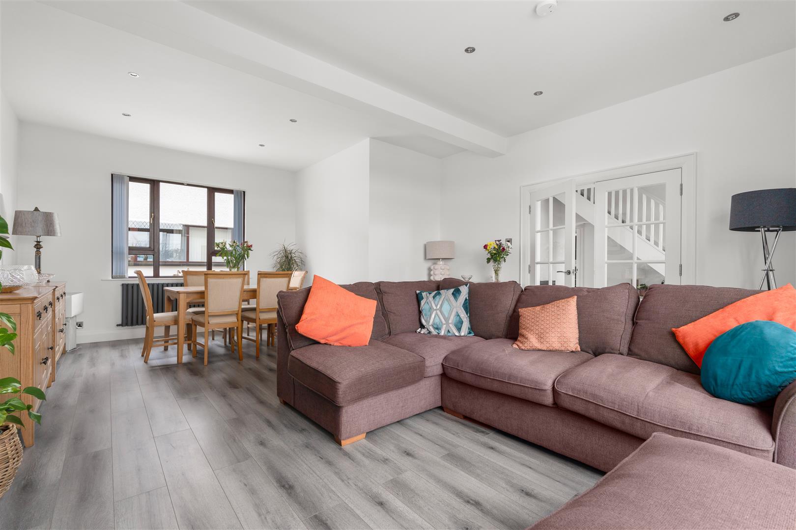 The separate apartment, also benefiting from oil fired central heating and uPVC double glazing, has been finished to an exceptional standard and offers ideal accommodation for multi-generational living. It comprises an open plan kitchen, living and dining area with a modern fitted kitchen, a bright conservatory overlooking the gardens, a shower room with modern white suite, and a spacious bedroom with dressing area and ensuite wet room. In addition, the property features dedicated office accommodation, making it an excellent choice for those wishing to operate a business from home or seeking versatile workspace.