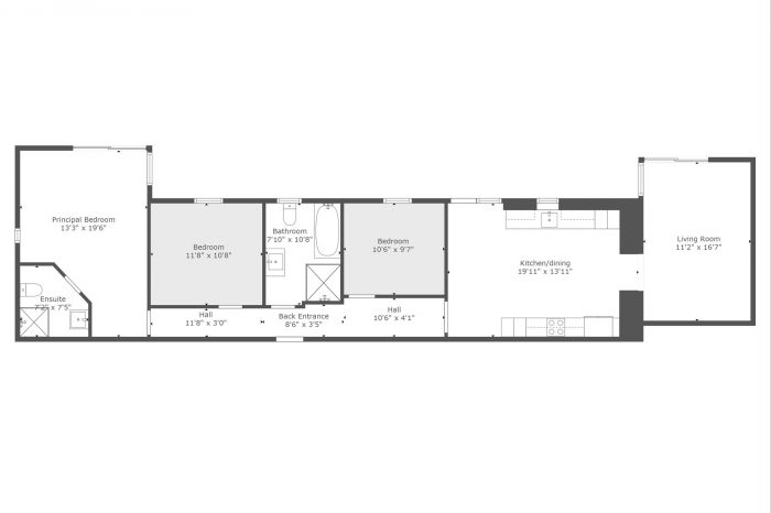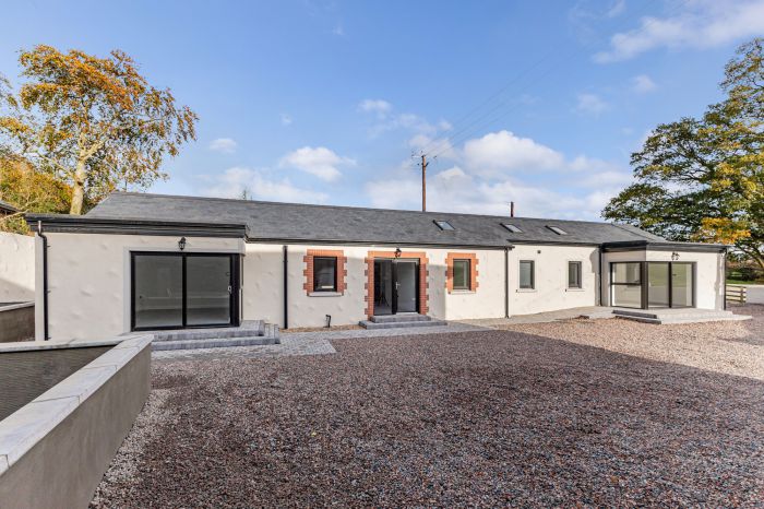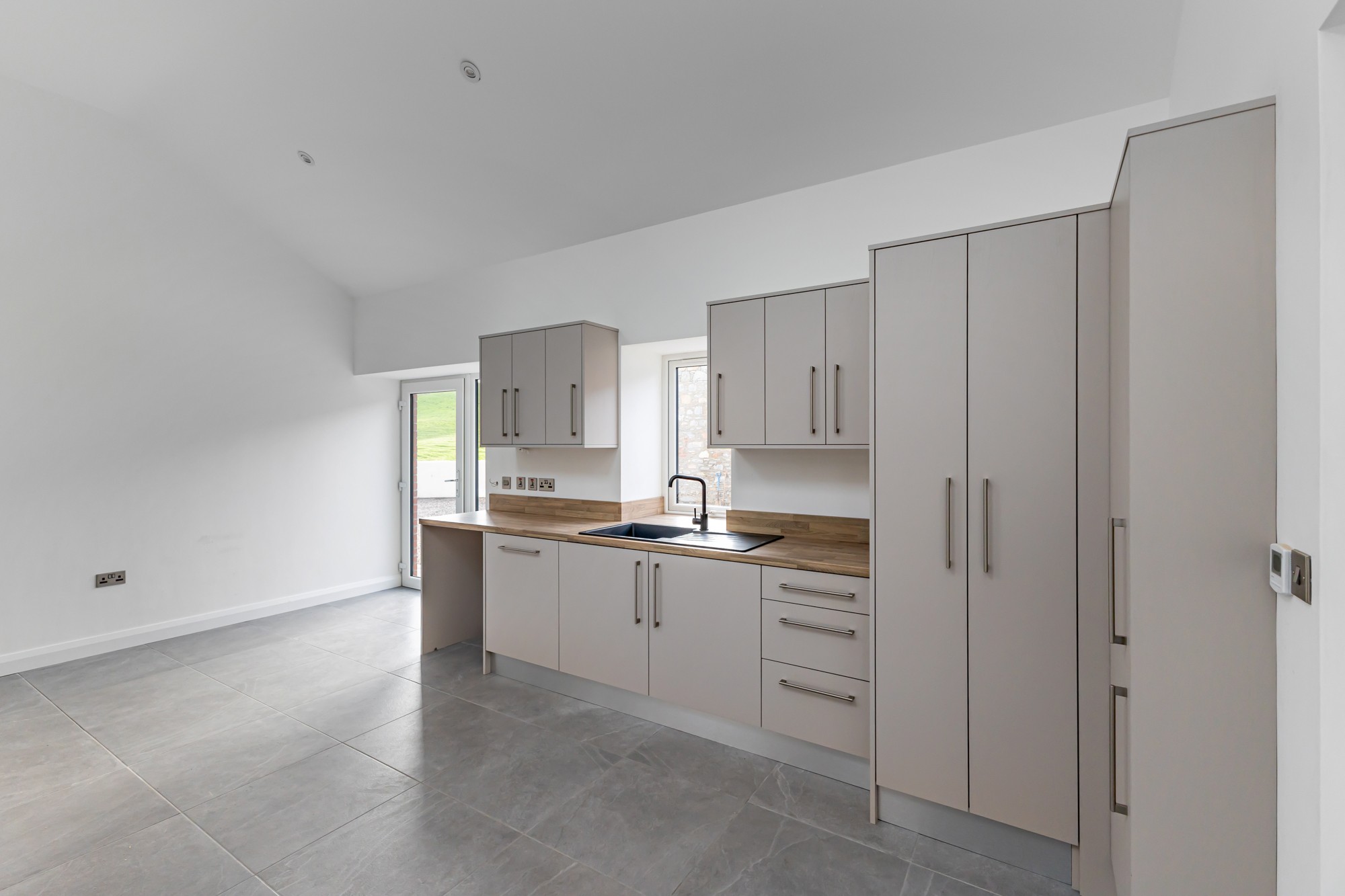 Number 10 Tullygarvan Mill is a detached bungalow converted from old mill buildings and it has been done to the highest specification (Gary Harpur Architect). Comprising living room with sliding doors to garden, high specification kitchen with space for dining, three goods sized bedrooms and bathroom, all with vaulted ceilings, recessed spotlight and underfloor heating.