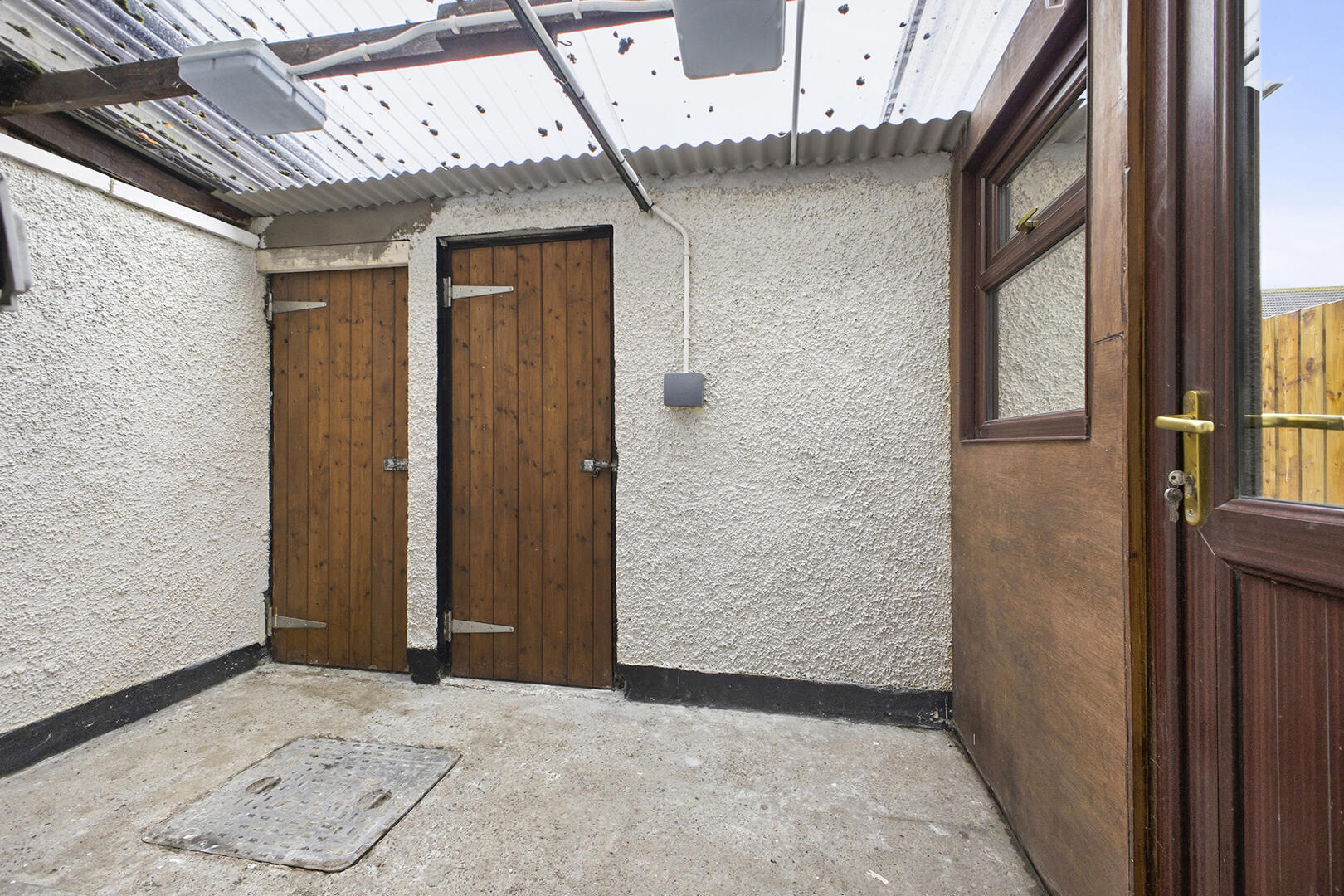 Light and power, access to two outhouses providing excellent outdoor storage or utility space, uPVC door to garden with double glazed glass inset