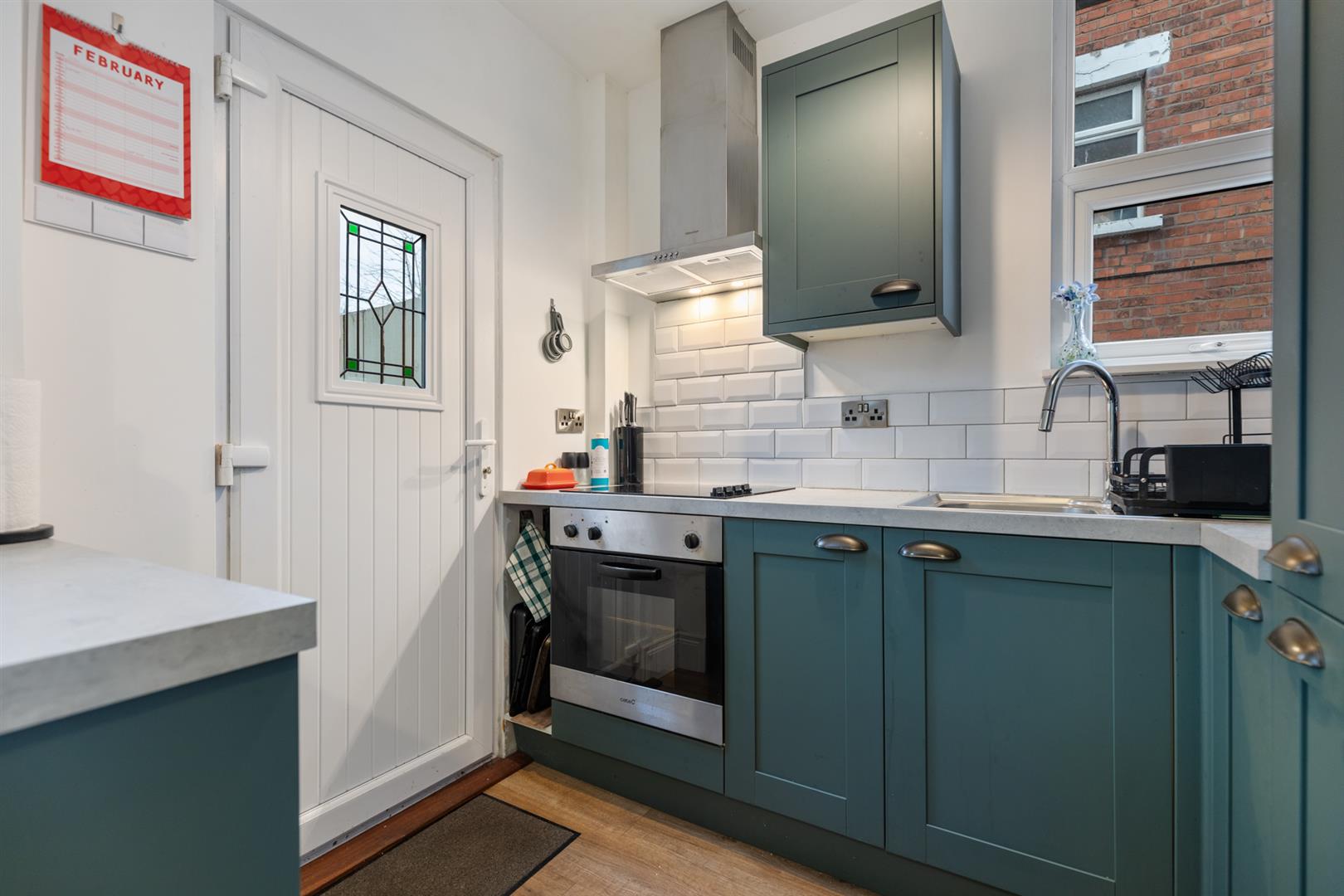 PVC front door, laminate wood flooring, cloacks cupboard under stairs housing gas fired boiler.