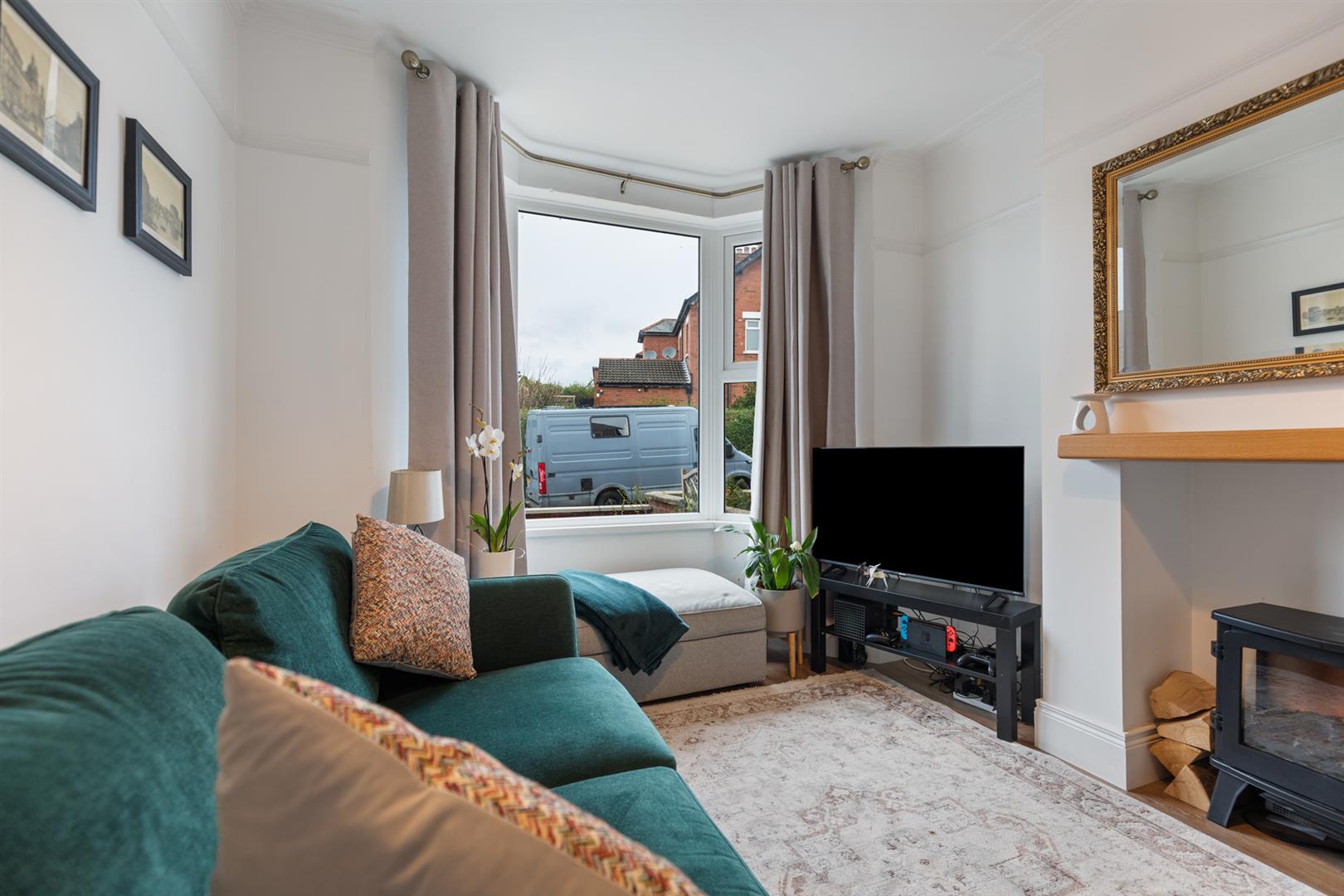 Bright Lounge With Bay Window Cornice Ceiling And Laminate Flooring