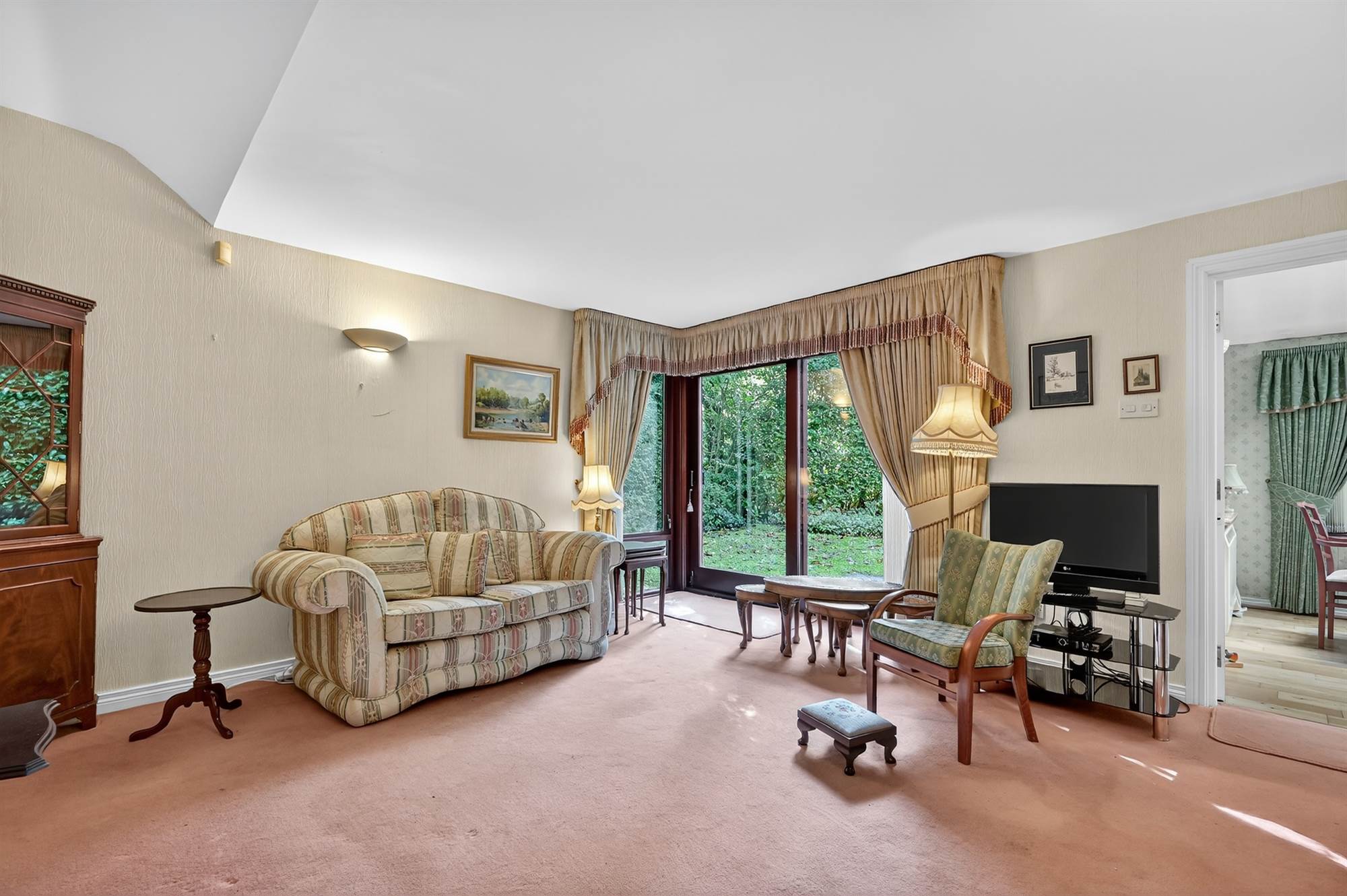 Lounge with patio doors leading to patio seating area and delightful communal gardens