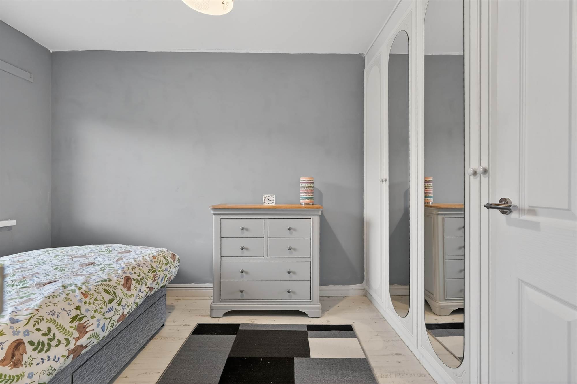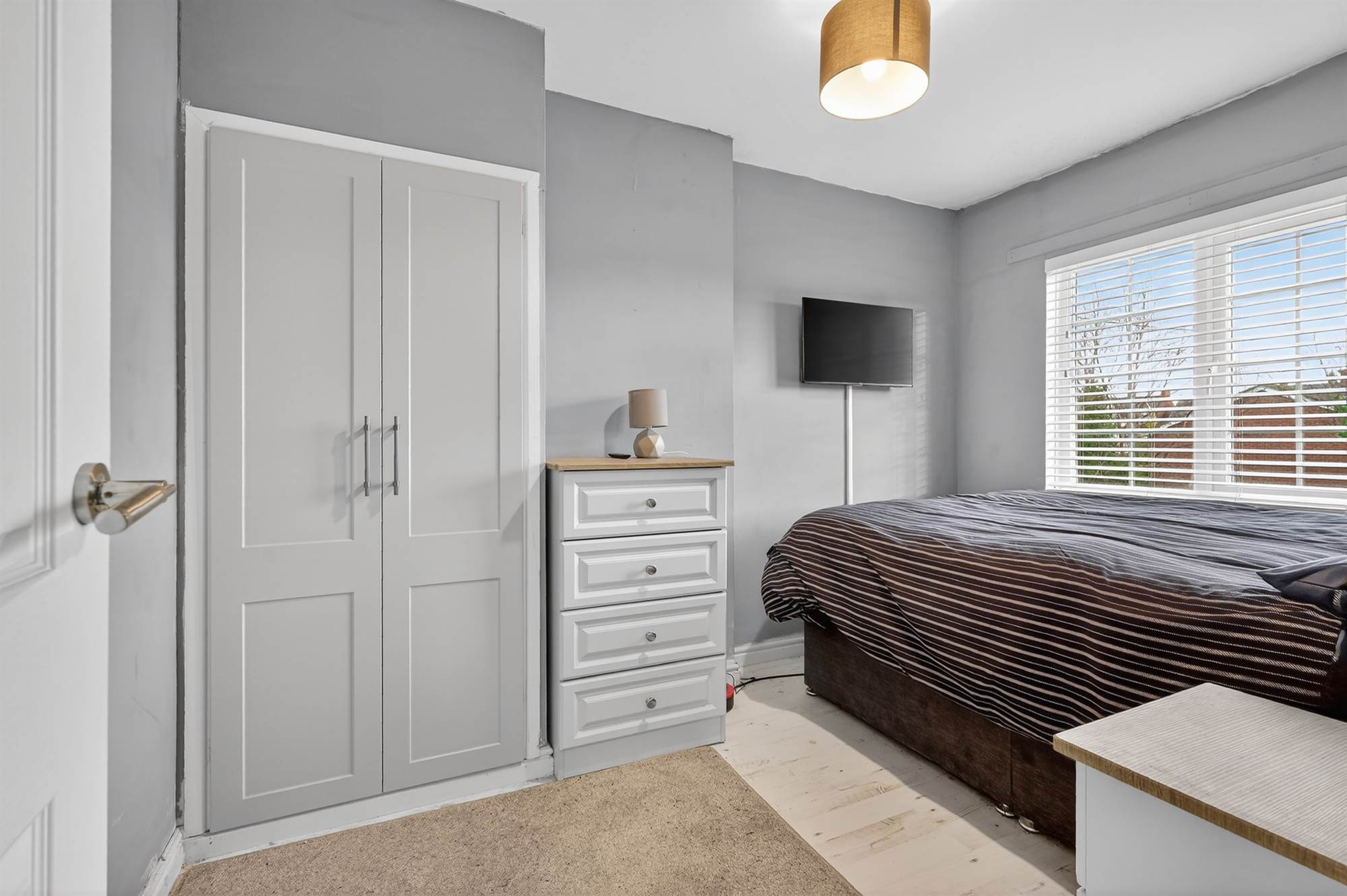Laminate wood effect floor. Built-in robe.