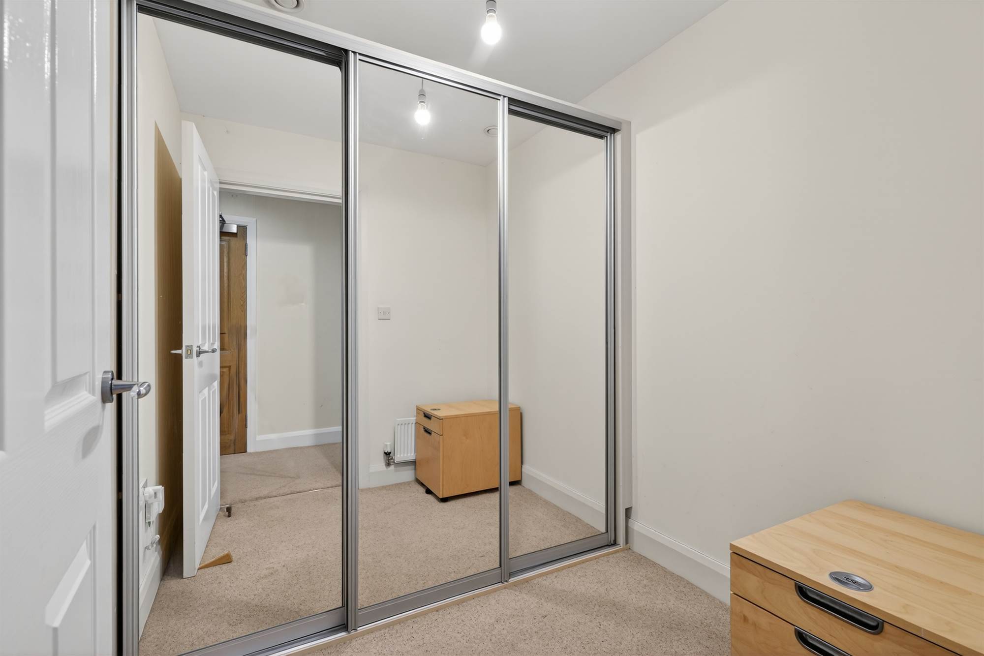 (at widest point). Wood effect flooring, large storage cupboard with mirrored fronts.