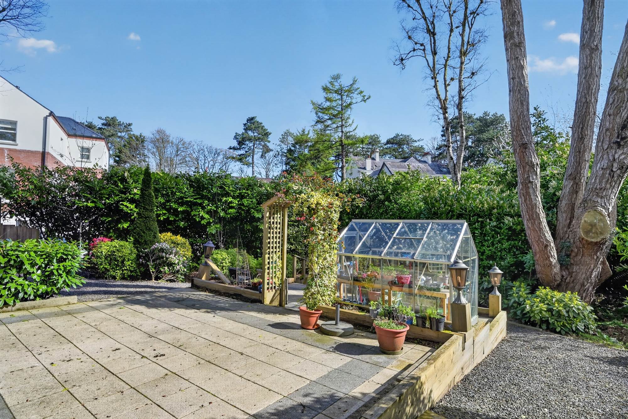 Electric gates leading to parking areas for residents and visitors. Beautifully landscaped gardens (maintained by management company) of approximately four acres. Superb degree of maturity with abundance of plants, trees and flowering shrubs. Walkways and paths meandering through the grounds with tranquil sitting areas. Feature lighting throughout. Vegetable garden. Attractively paved patio/terraces. Screened bin storage.