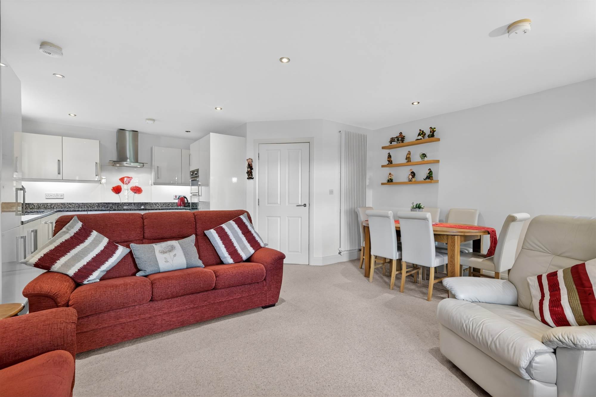 This is an immaculate spacious ground floor apartment, with modern kitchen open plan to a living area and additional study area with built in storage. There are two well proportioned bedrooms, one with ensuite, a bathroom and separate utility cupboard.