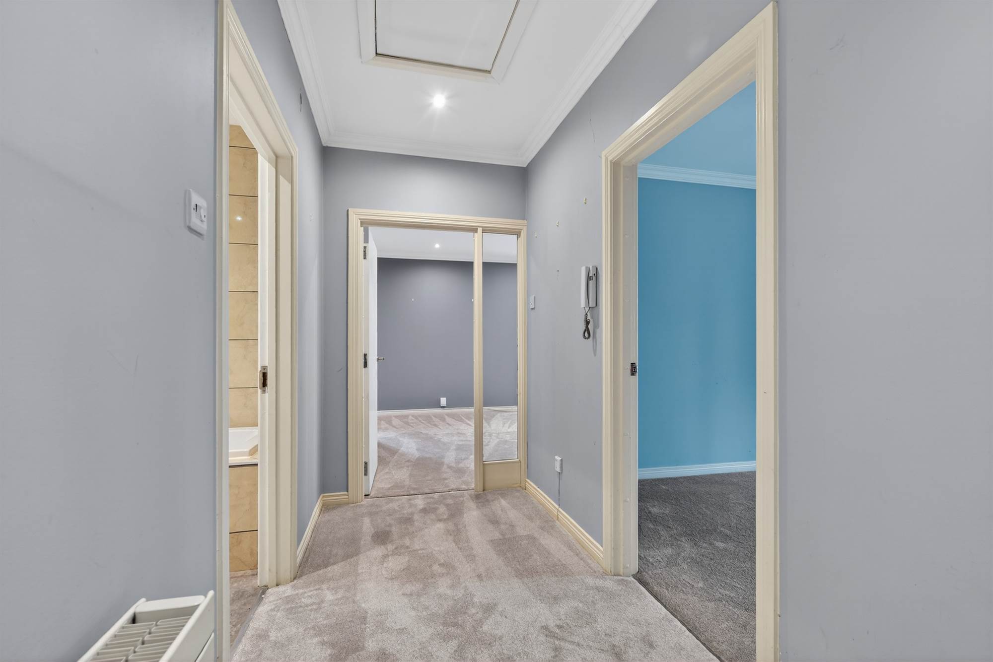 Spotlights. Cornice ceiling. Feature vertical radiator. Open plan to: