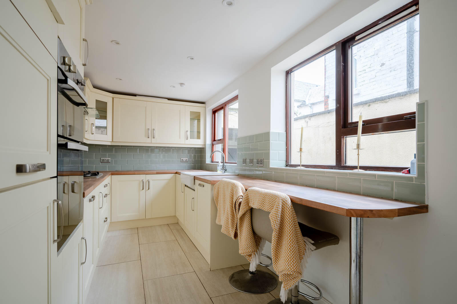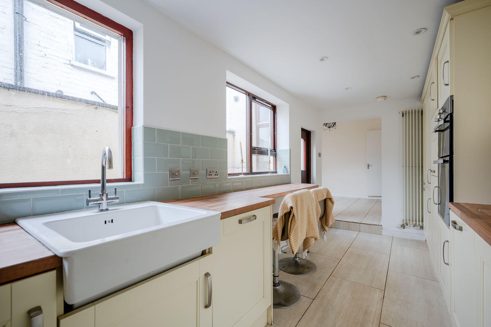 The front reception room is a warm and welcoming space, enhanced by a large bay window that floods the room with natural light. A second reception room to the rear offers excellent versatility making it perfect as a dining room, family room, or home office. The extended kitchen is a standout feature, fitted with shaker-style cabinetry, integrated appliances, and a breakfast bar.