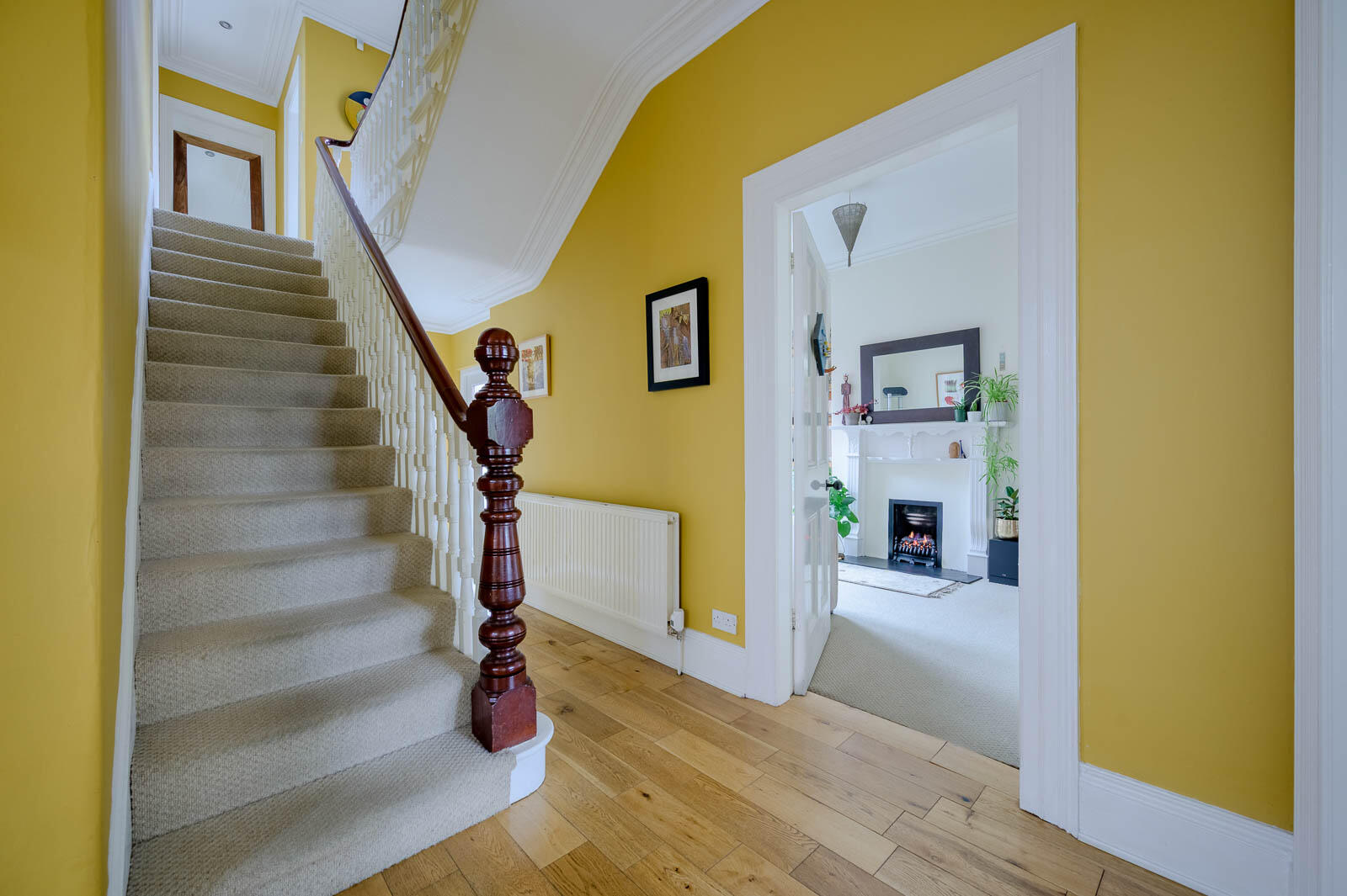 Stunning Entrance Hallway with Polished Wooden Flooring and a Beautiful Turned Staircase with Original Balustrade