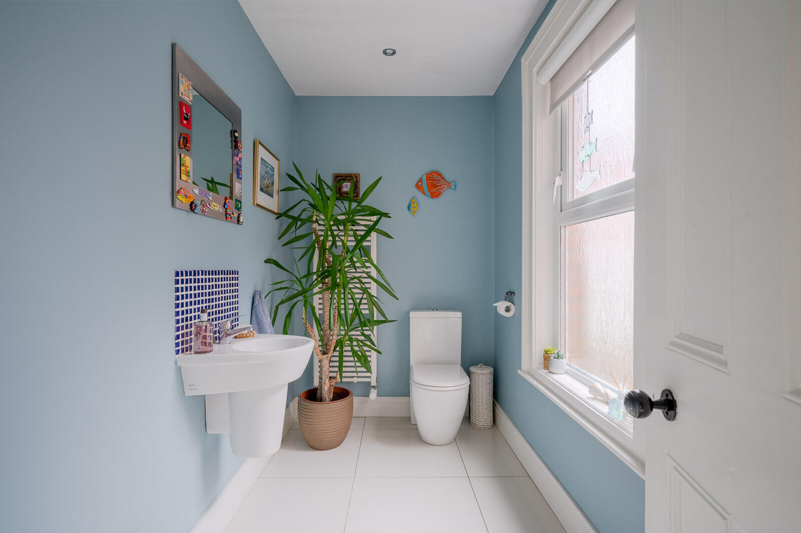 Upstairs are five generous bedrooms, including a principal suite with a magnificent bay window. The family bathroom features a stylish white suite, complemented by a separate modern shower room.