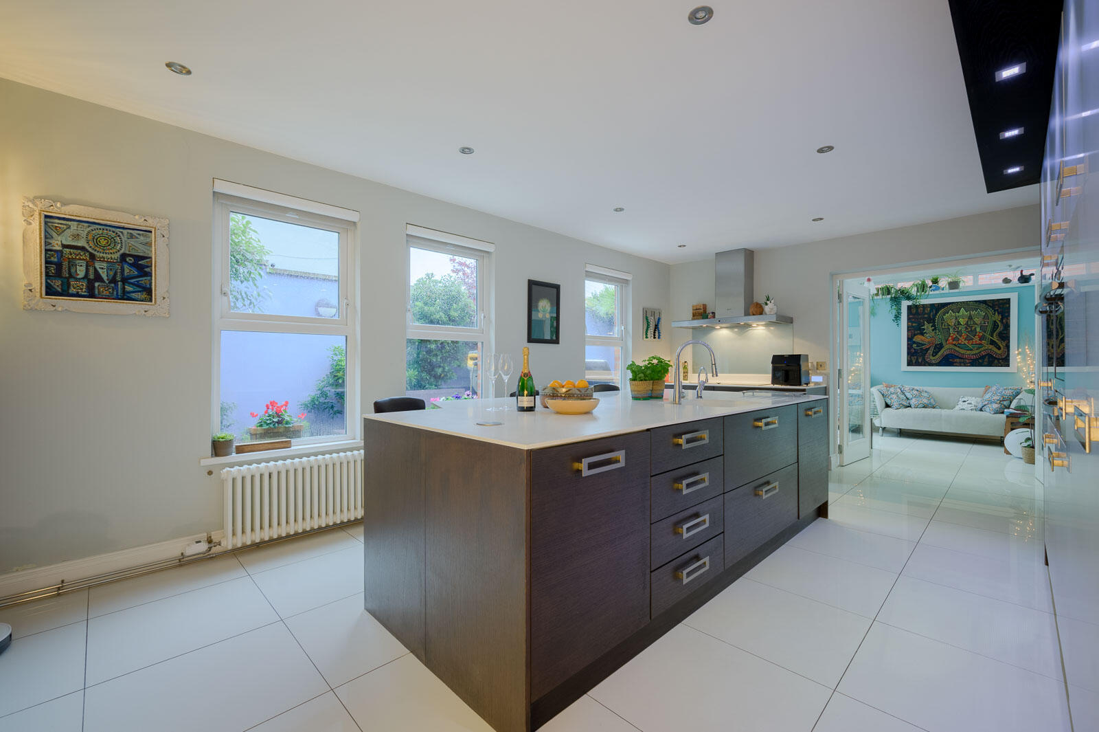 Contemporary Fully Fitted Kitchen with Central Island, Corian Worktops, and Integrated Appliances