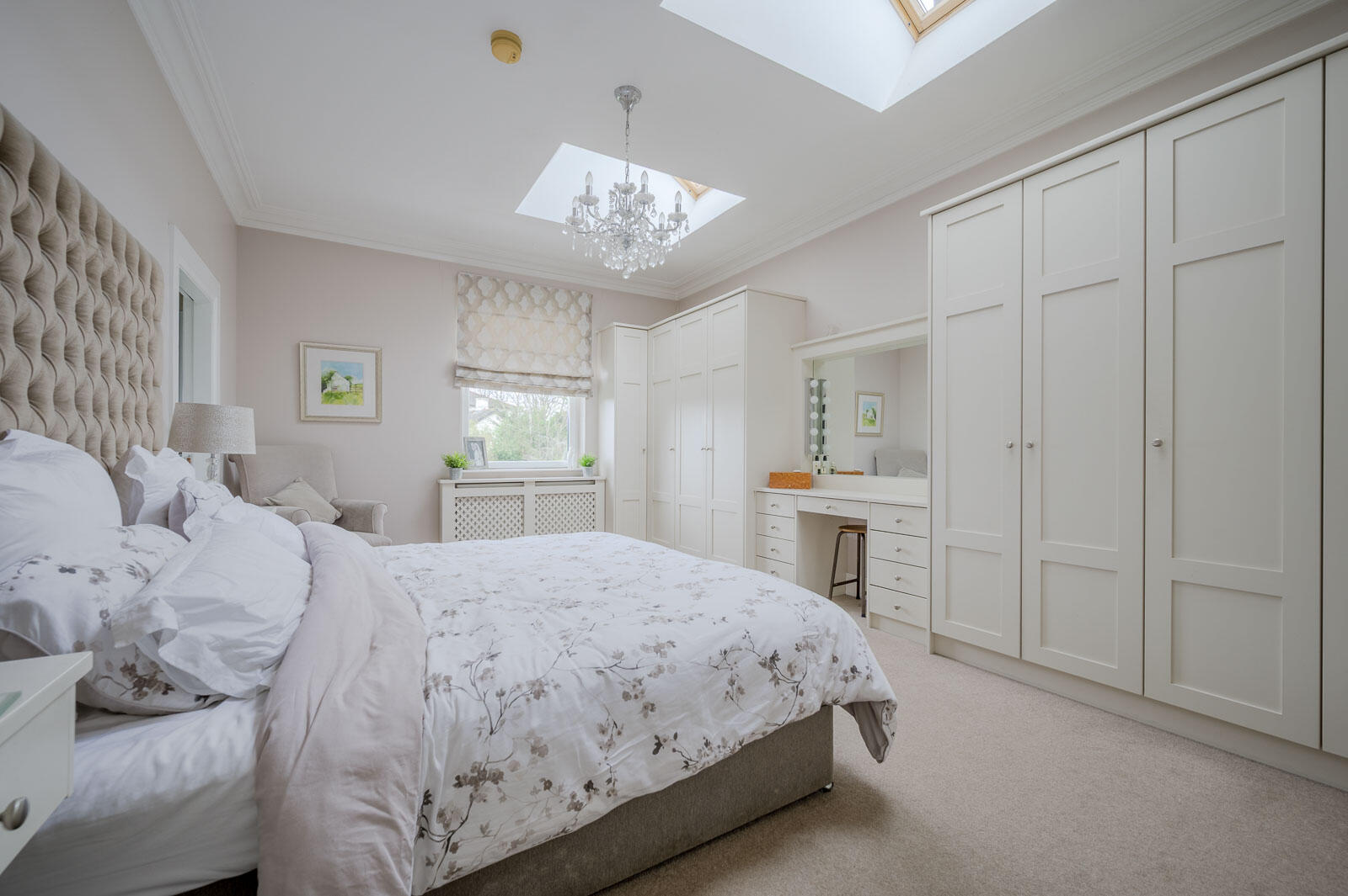 Principal bedroom providing a calm, elegant retreat complete with fitted storage and refined finishing touches.