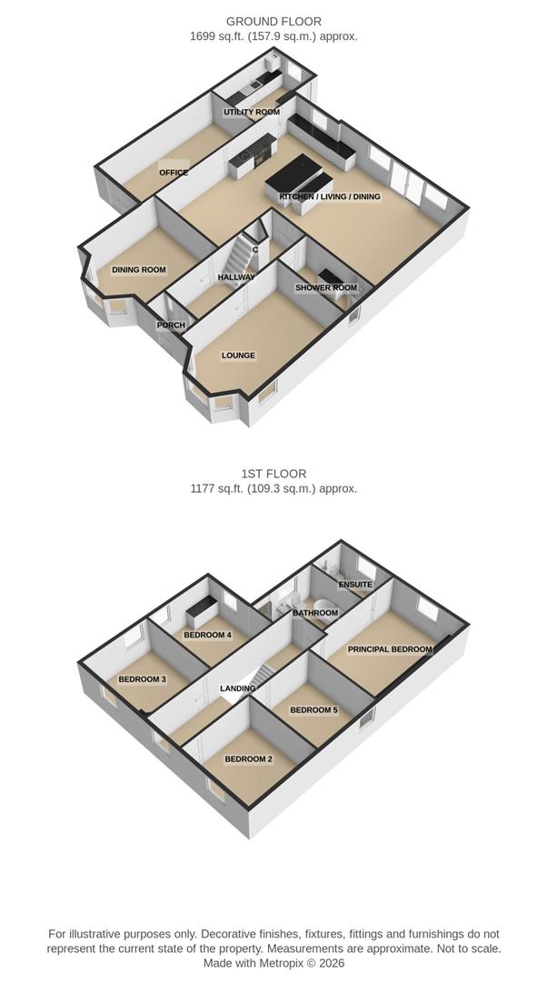 Upstairs, spacious bedrooms continue the theme of comfort and quality, with well-proportioned rooms, tasteful finishes and excellent natural light. The principal bedroom offers a calm retreat complete with fitted wardrobes, while the remaining rooms offer superb flexibility. Modern bathrooms on the upper floor are finished to a high standard.