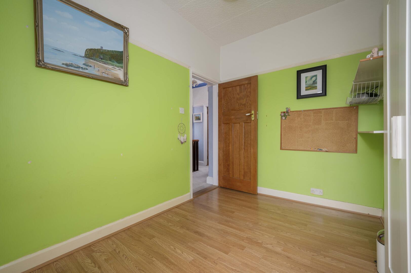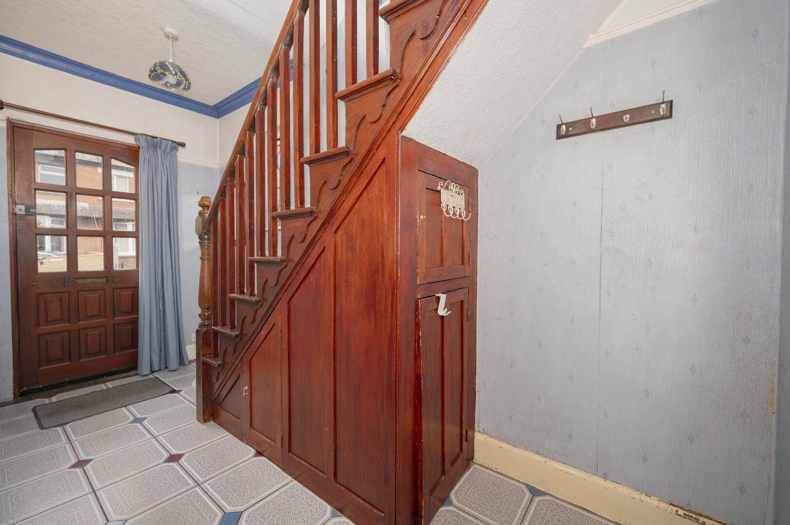 Ceramic tiled floor, picture rail, original stained glass window, under stair storage space, access to electrics.