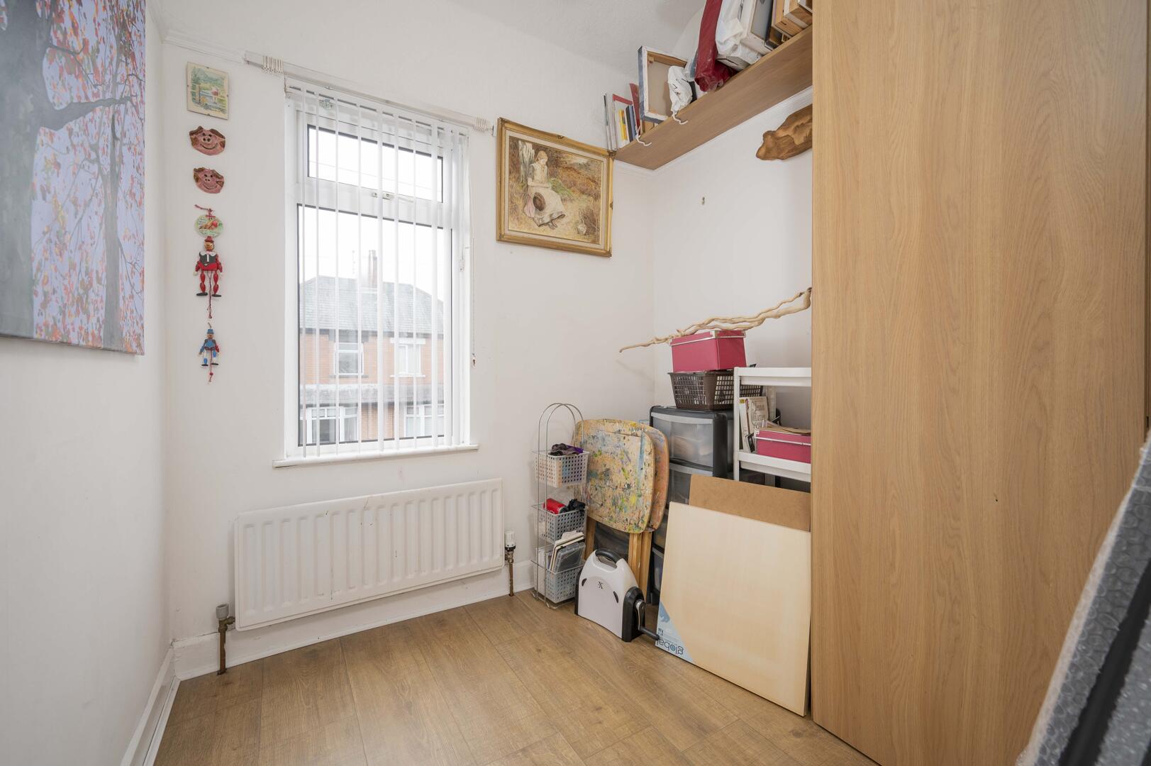 Outlook to front, laminate wooden floor, built-in cupboard with access to Worcester Bosch gas boiler.