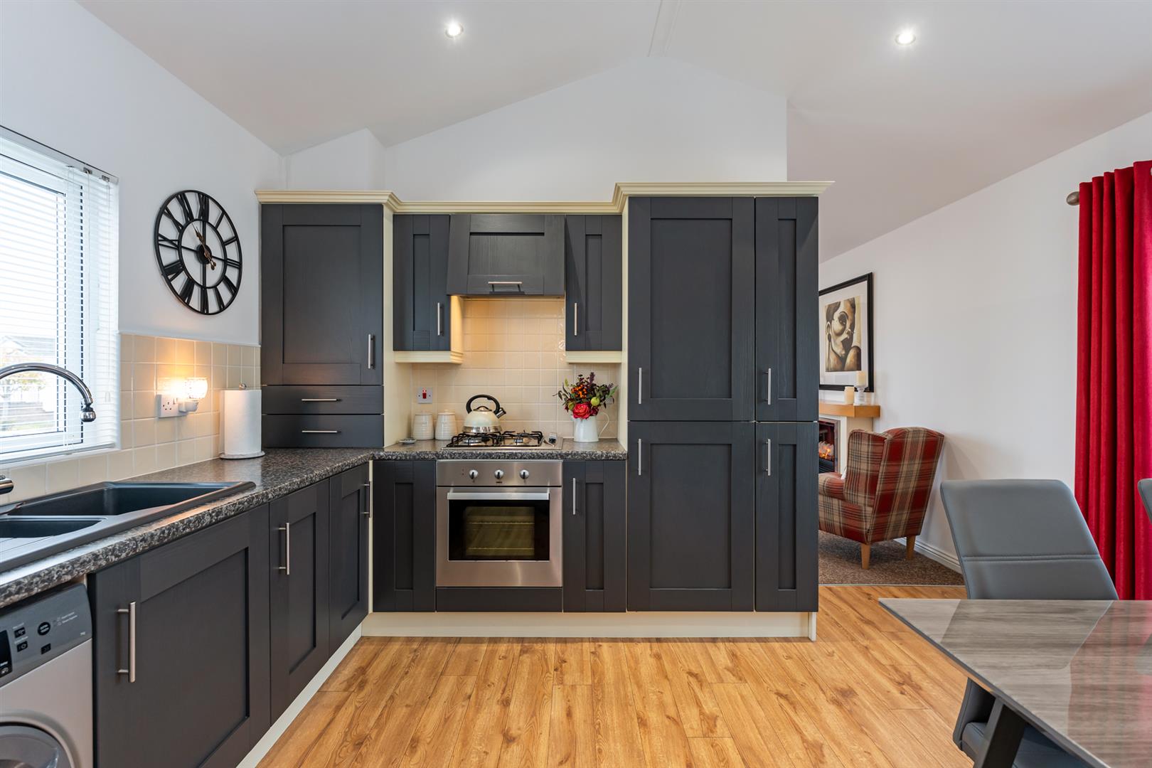 Located in the popular Park Homes development in Ballyhalbert, this beautiful detached bungalow is accessed via electric gates and benefits from being on a generous site within close proximity to the well landscaped communal areas, bowling green and community hub.