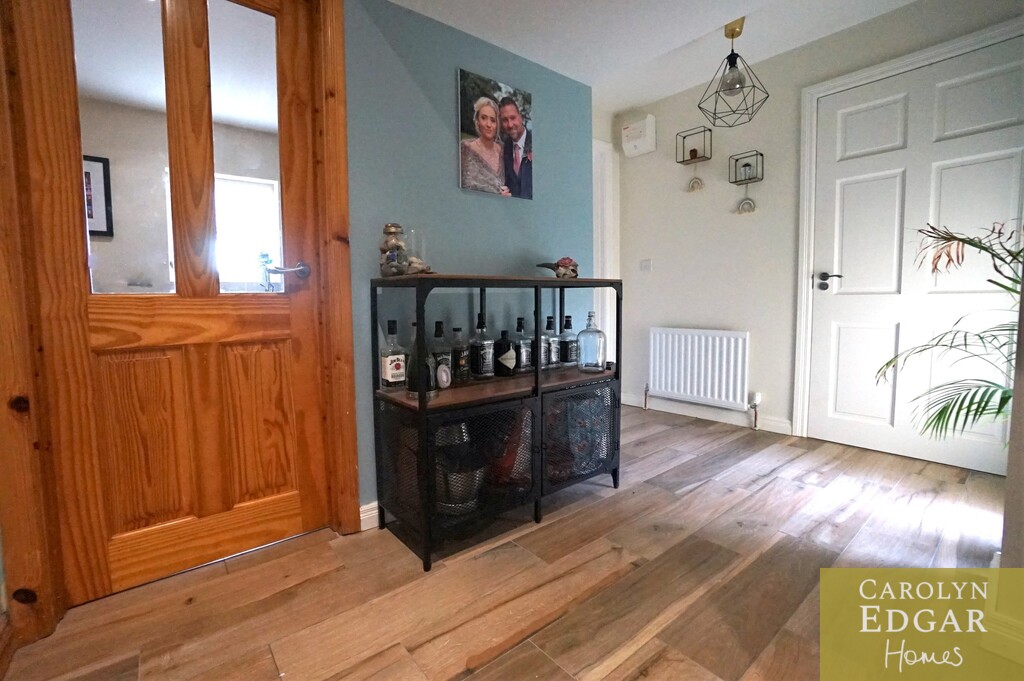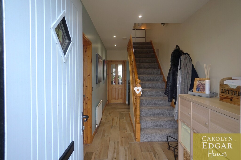 This beautifully presented extended four bedroom home will not disappoint, immaculately presented throughout this modern and stylish property has great appeal, providing spacious and versatile accommodation throughout, making this the perfect readymade home whatever your family needs. Located in a popular residential area this property is set in a quiet cul de sac, only a short walk from the shoreline and village many its amenities and shops and just a 15 minute drive will bring you to the busy town of Newtownards with a wider array of shops, restaurants and amenities. Downstairs comprises of a spacious entrance hallway, large living room with feature open fireplace and double doors leading to the dining room and contemporary and modern fitted kitchen and extensive family room overlooking the sunny rear garden with double doors lead out to a large patio area which overlooking the well maintained private rear gardens. The property also benefits from a large double bedroom and shower room/wet room on the ground floor , providing that extra flexible living space. Upstairs there are three generous sized bedrooms, master with ensuite and modern family bathroom. Outside to the front of the property is paved driveway providing ample parking for several cars and private enclosed gardens to the rear with large paved patio area, mature trees and shrubs and countryside views. A perfect place to relax and unwind.