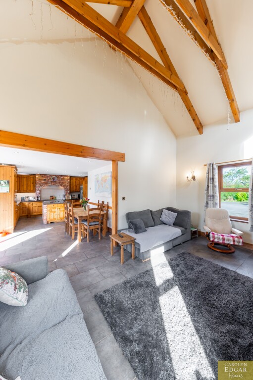 Set on an idyllic, extensive private site this property will appeal to those looking for a relaxed country life with versatile living accommodation whatever your family needs, with an impressive 3000sq ft split over two floors with two bedroom both with ensuite bathrooms on the ground floor will have great appeal for those looking for that extra living space or to buyers with walking or mobility issues with the convenience of both downstairs bedrooms and bathroom access. Internally the property comprises an bright entrance hallway with galleried landing, spacious and bright dual aspect lounge, with open fireplace, overlooking the gardens with French doors to a beautiful patio area & gardens, fabulous open plan family room with vaulted and beamed ceiling and impressive brick cast chimney breast multi burning stove for those cosy nights in, open plan to country style luxury fitted kitchen with centre island and an great array of built appliances and large sunroom overlooking the surrounding area and gardens. Additionally the property has two extensive double bedrooms both with en-suite shower rooms and a walk in dressing room off the master. A Utility/boot room and separate downstairs bathroom/shower room completes the ground floor . At first floor level the landing incorporates an open plan office area leading to two spacious double bedrooms with eaves storage and spacious family bathroom with a modern and stylish suite and freestanding bath.