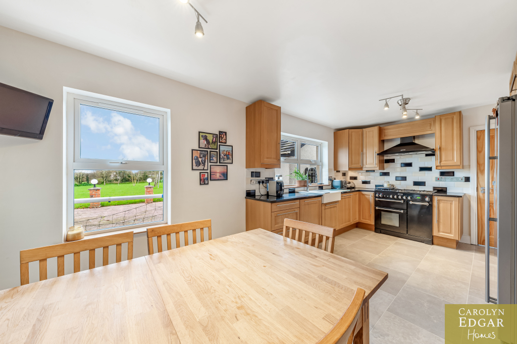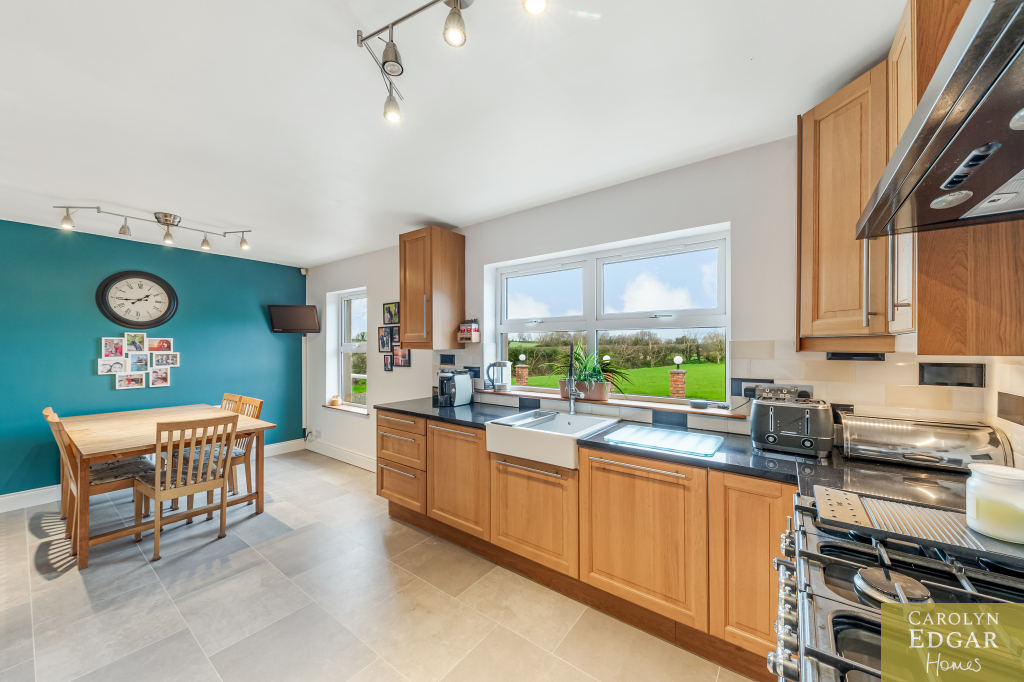 This modern and spacious detached home would be ideally suited to families seeking a sizable and peaceful living environment. Set on a well maintained private site of circa 0.5 acres of wrap around mature gardens in an idyllic semi-rural location in the stunning countryside surrounds of Glastry the property is a minutes' walk to Glastry College and a short drive to many local amenities, beautiful local beaches and Strangford Lough. With plenty of opportunities to enjoy the great outdoors this really does offer an excellent opportunity for those looking for a change of pace and lifestyle away from the hustle and bustle of everyday life in a perfect countryside setting. Internally the property boasts a total of five generously proportioned bedrooms, the master with ensuite and a further two bathroom suites, one on the ground floor and with four reception rooms ensures there is ample space for everyone in the household with a versatile array of living and entertainment spaces, whether you are hosting a dinner party, arranging a family gathering, or simply relaxing at the end of a long day, these rooms can adapt to your needs. The heart of this home is undeniably the open-plan kitchen, which is flooded with natural light, creating a warm and welcoming atmosphere. The kitchen also benefits from an integrated dining space, providing a perfect setting for family meals or casual get-togethers and handy utility room.