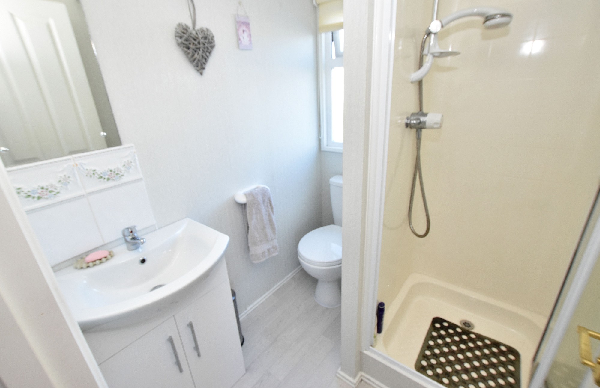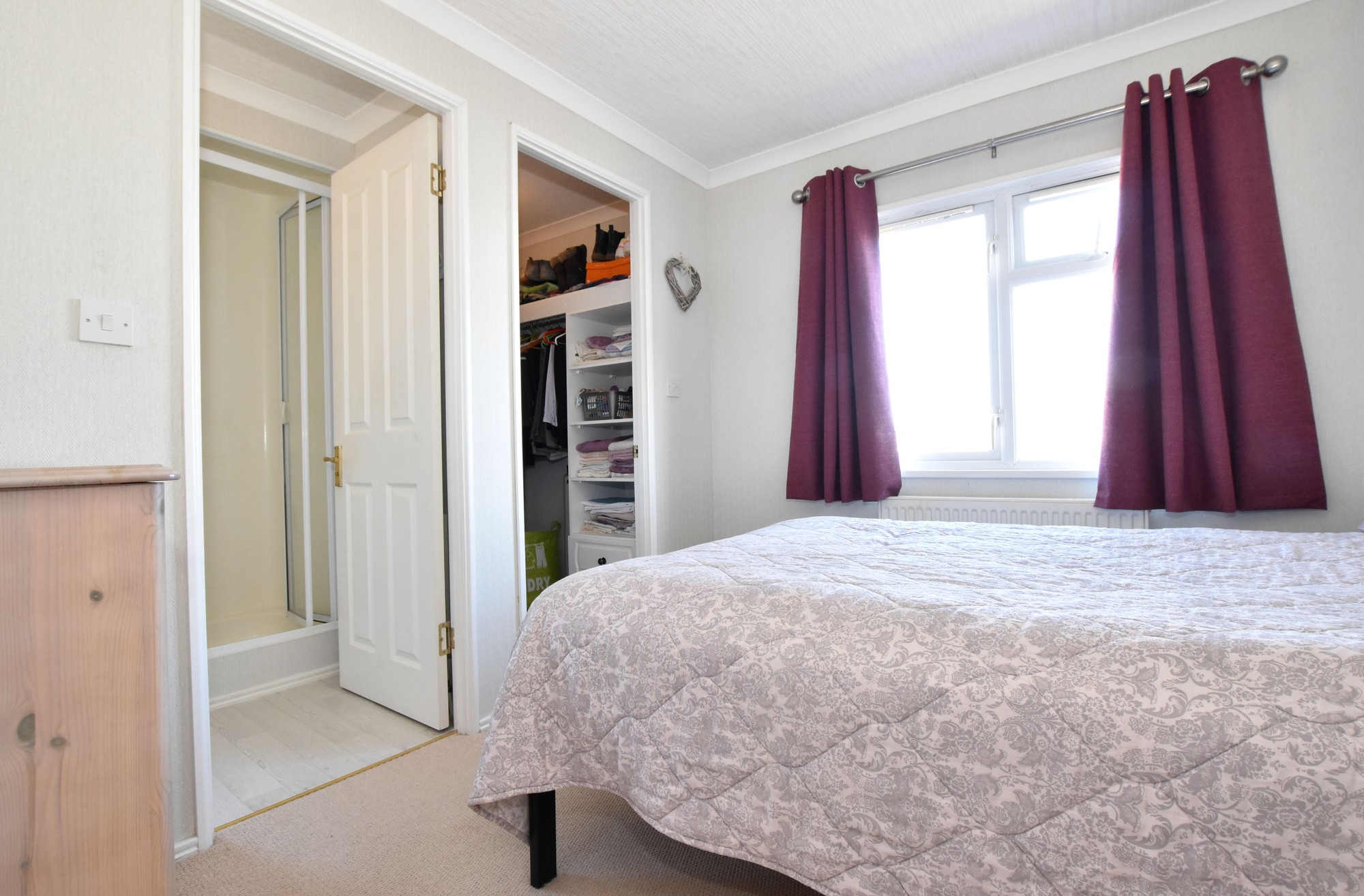 There are two well-proportioned bedrooms, including a spacious master bedroom complete with walk-in dressing area and ensuite shower room. A separate three-piece bathroom serves guests and the second bedroom.