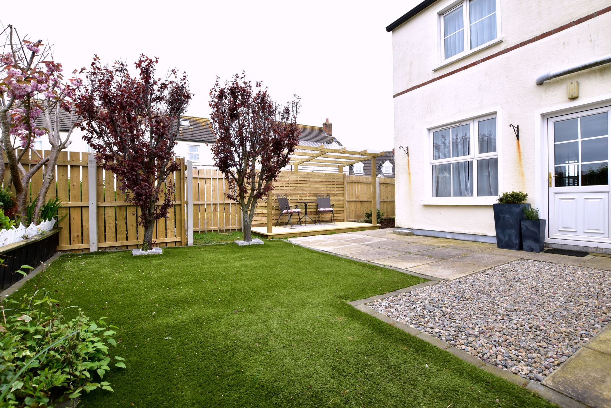 To the rear, a private and fully enclosed garden creates the perfect little sanctuary, complete with patio/sitting area, artificial grass for easy upkeep, and mature trees and hedging offering that extra touch of privacy.