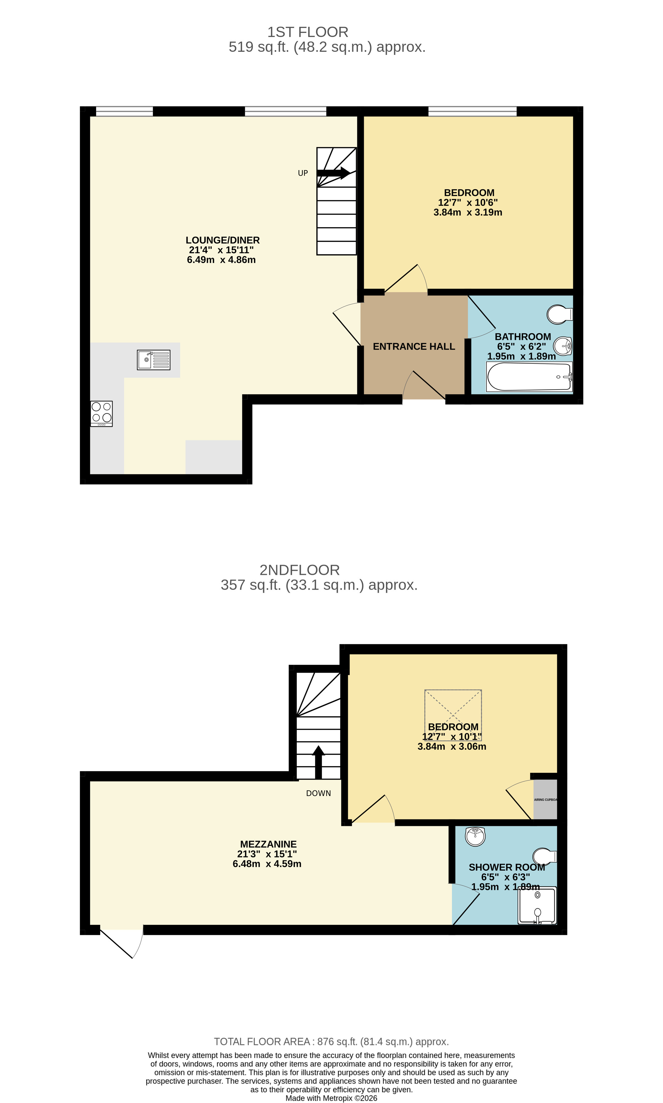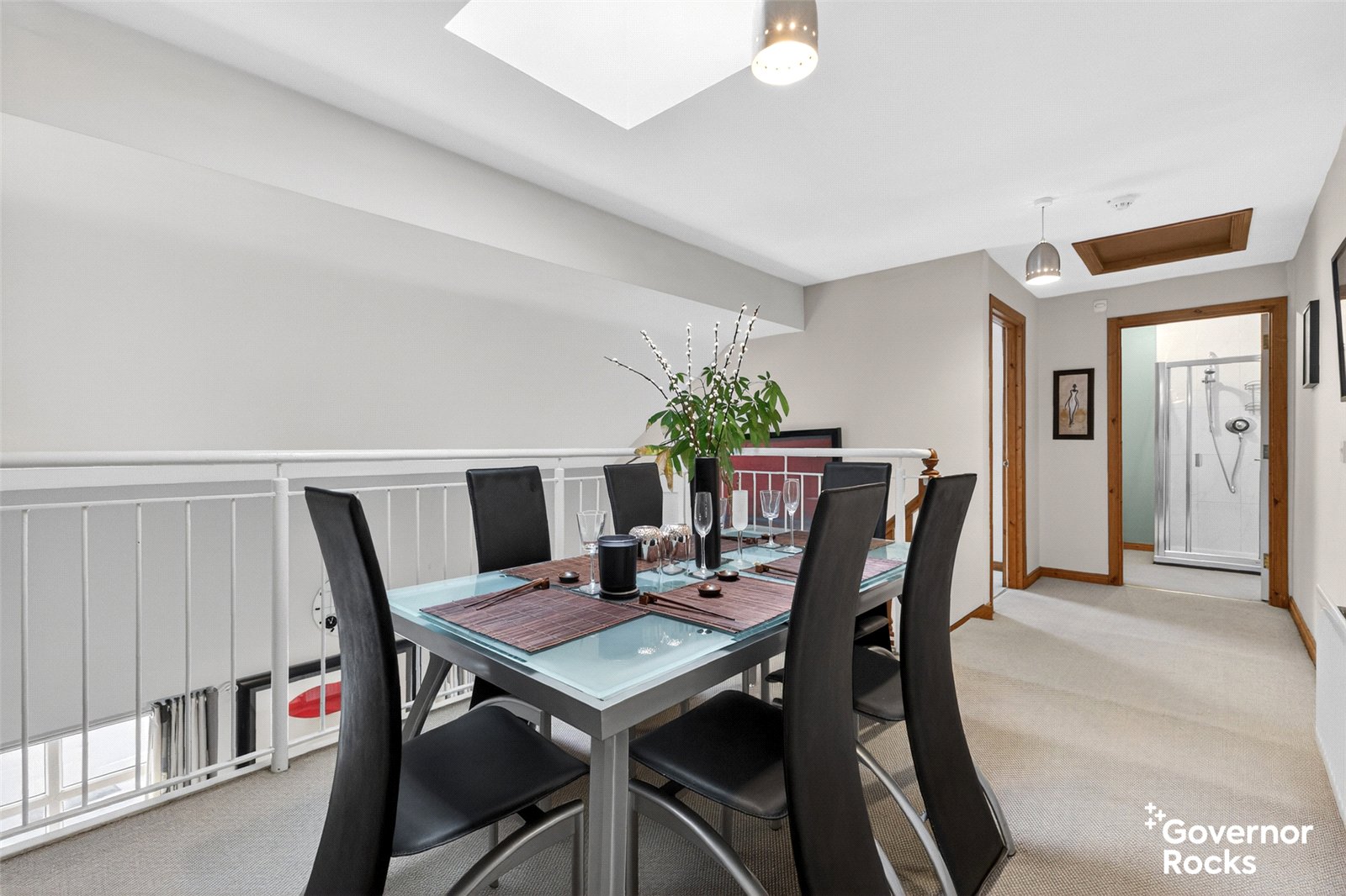 The first floor also hosts a generous double bedroom along with a well-proportioned family bathroom. From here, a striking quarter-turn staircase leads to the second floor mezzanine landing, a versatile space ideal for use as a dining area, home office, or additional relaxation zone. The second floor further benefits from a second spacious double bedroom and a contemporary shower room.