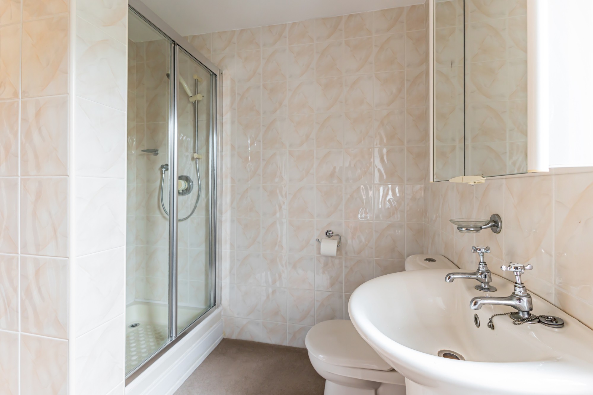 Upstairs offers three well proportioned bedrooms with the master bedroom providing two double built in wardrobes in an already impressive sized bedroom, the landing has a superb walk in storage room with a radiator to offer the desired hotpress idea, a sizeable bathroom consists of a w/c, sink and bath with mains shower.