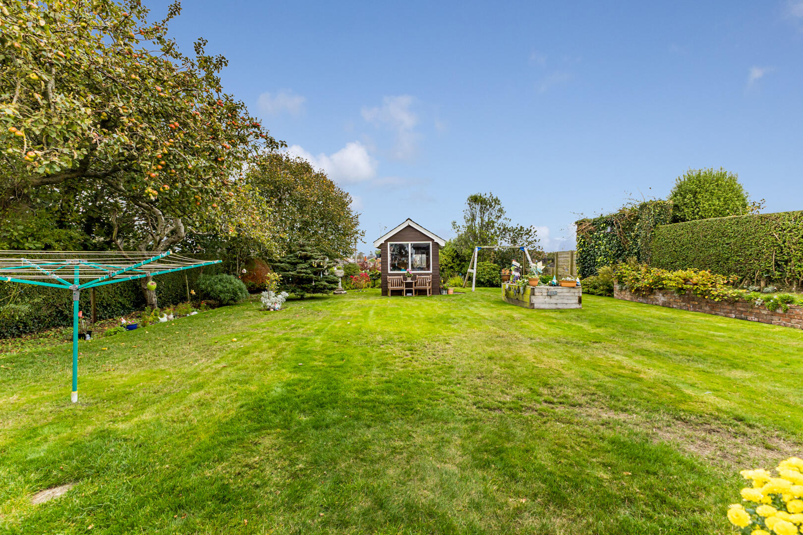 Outstanding mature rear garden in lawns with vast array of colourful flowers, plants and shrubs, apple trees, excellent degree of privacy making it ideal for children at play, outdoor entertaining or enjoying the sun.