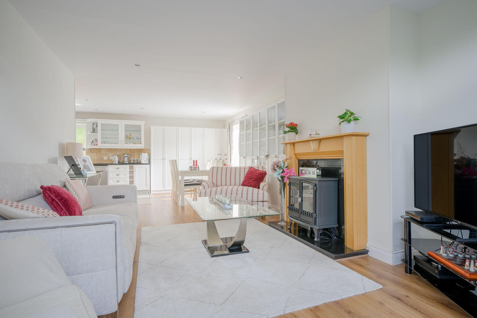 Living Room is Open Plan to Casual Dining Area and Kitchen with Granite Work Surfaces