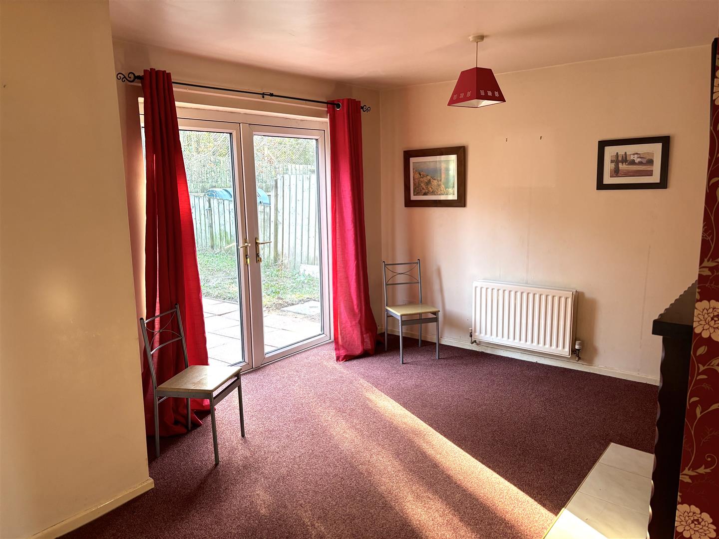 having fireplace with tiled inset and hearth, UPVC patio doors to rear garden.