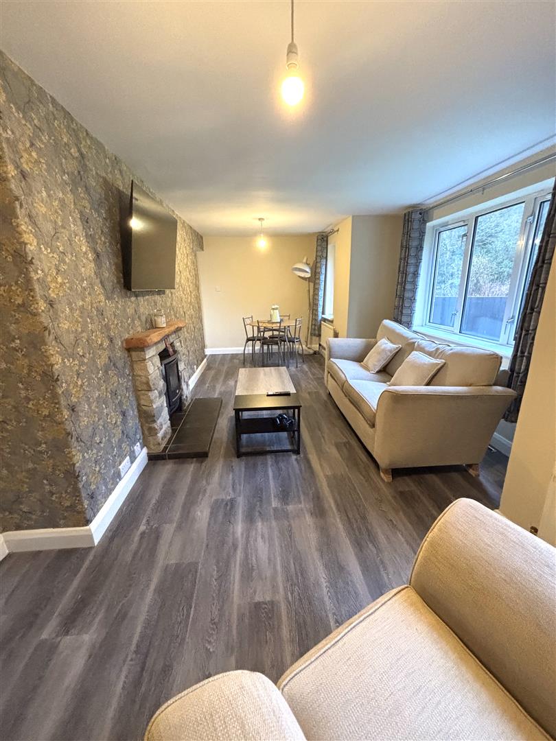 Fitted with a range of eye and low level units with matching work top. Tiled around units. Stainless steel sink unit. Stainless steel extractor fan and light. Space for fridge freezer. Plumbed for automatic washing machine. Stainless steel splash back. Cooker point. Cushion flooring.