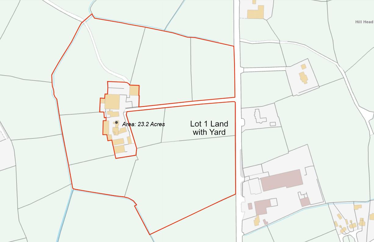 Lot 1 includes the dwelling house, agricultural yard and circa 23 acres of land, as illustrated on the attached maps, labeled Lot 1.
