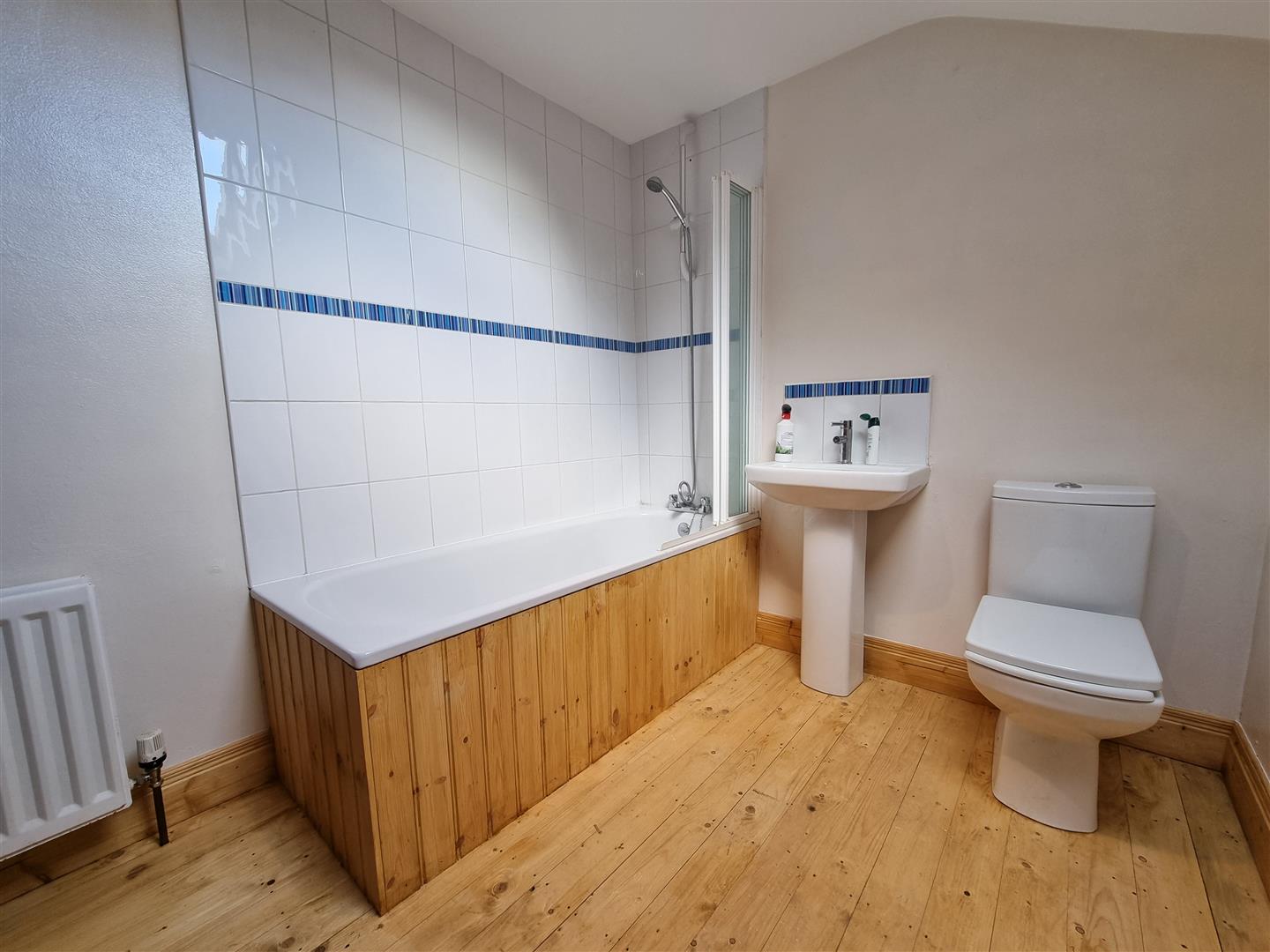 Fitted with a white suite including a bath with electric shower over, W/C and wash hand basin. Tiled splash back areas. Pine flooring. Built in Hot Press.