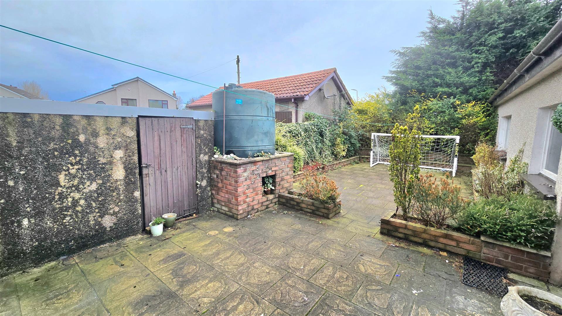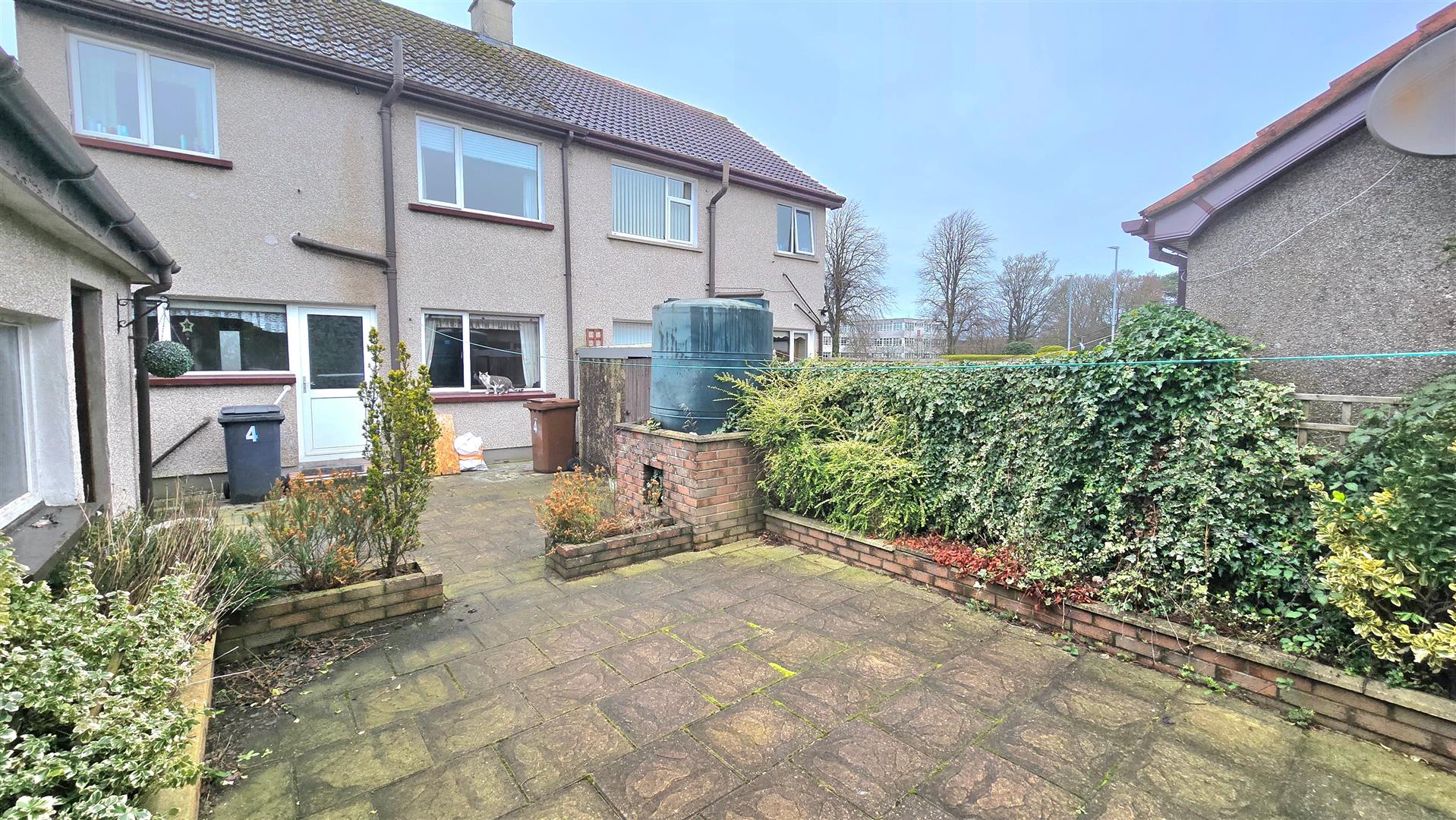Fully enclosed rear garden, hardscaped for ease of maintenance.