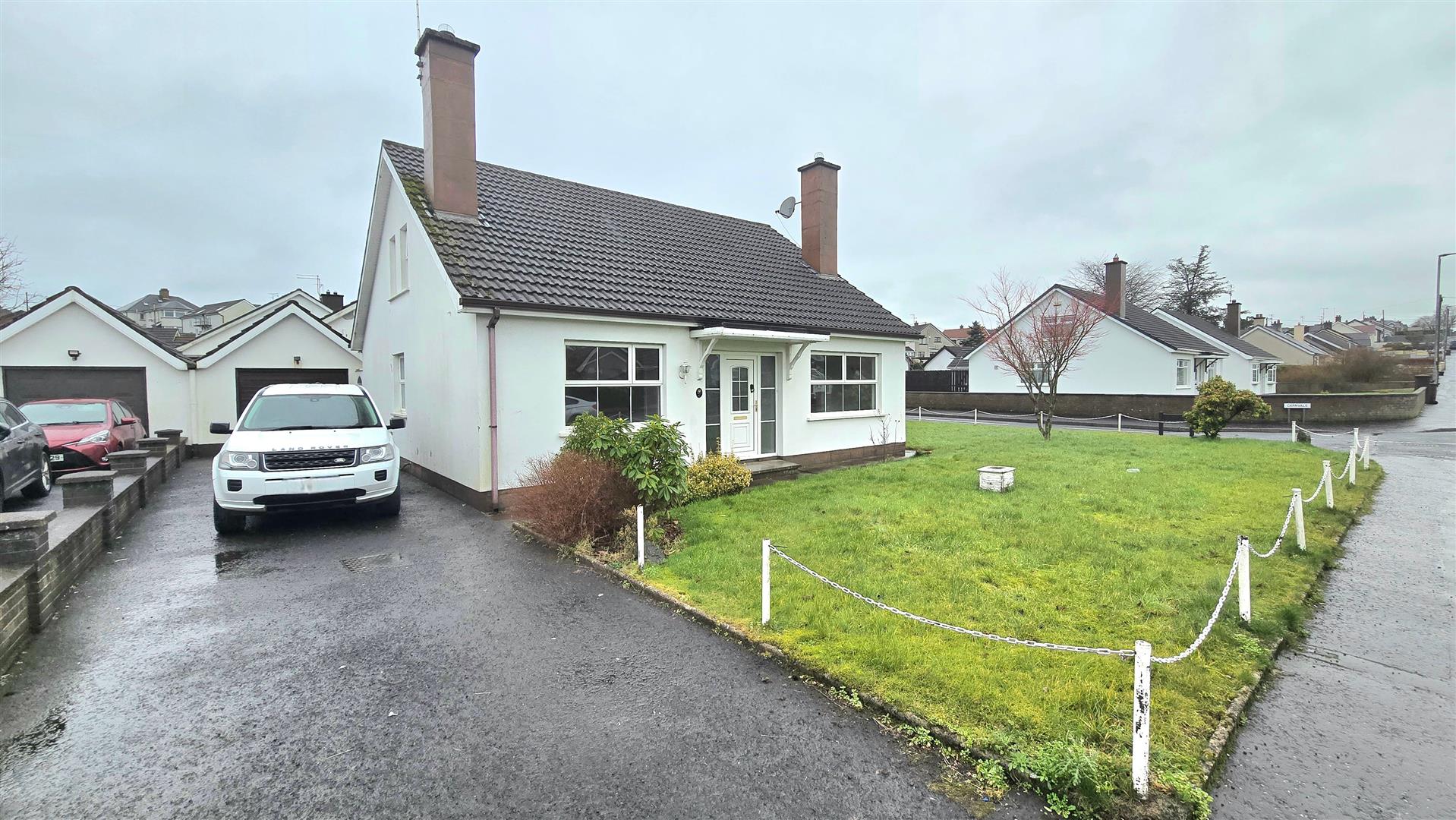 Located on a corner site, where Carnvale meets the Carniny Road, this spacious detached chalet bungalow (circa 1,500 sq ft) offers flexible family living accommodation in a pleasant residential environment.