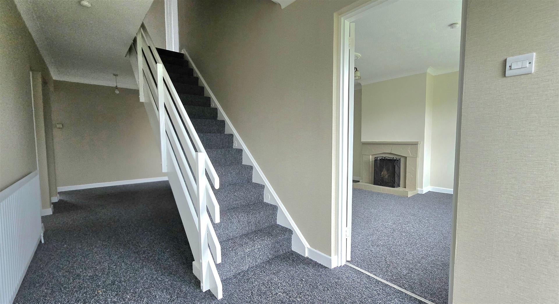 PVC Front door and side lights. Ceiling coving. Hotpress.