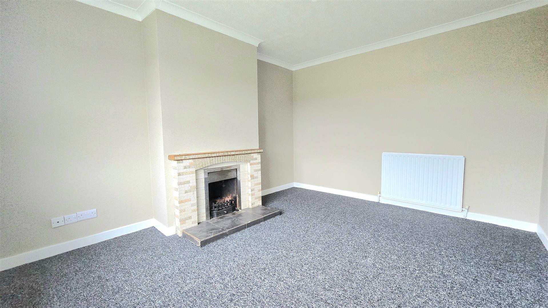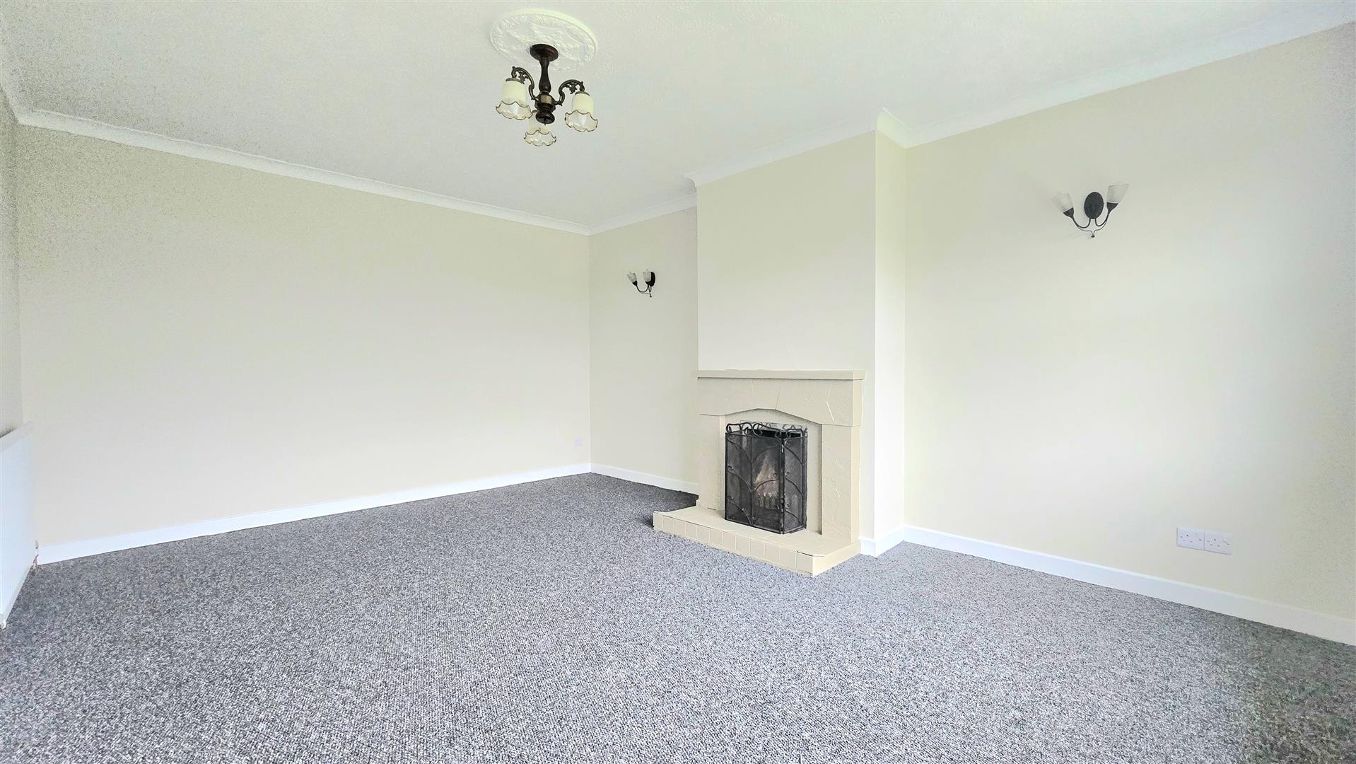Open fire in a tiled surround with wooden mantle piece and tiled hearth. Ceiling Coving.