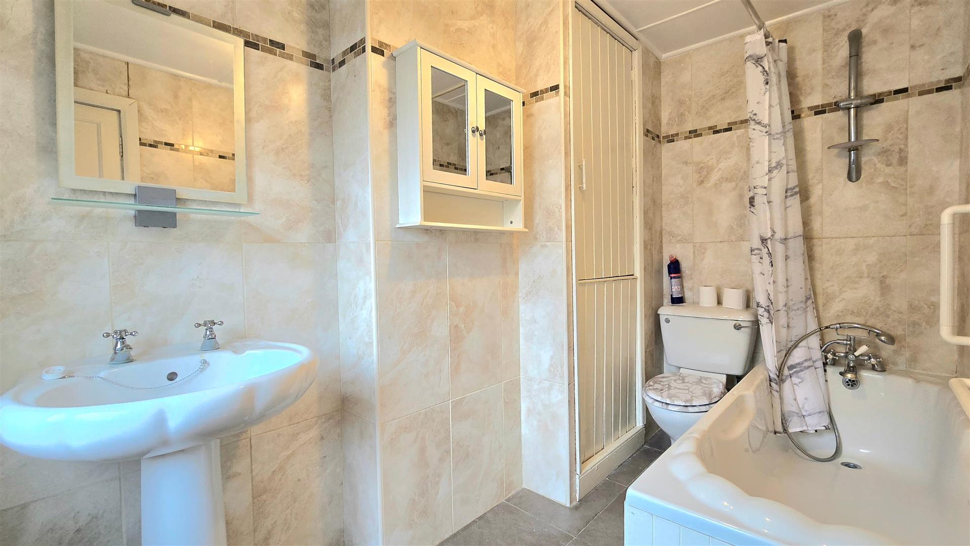 Fitted with a white bathroom suite including a bath with electric shower over, W/C and wash hand basin. Built in hot press.