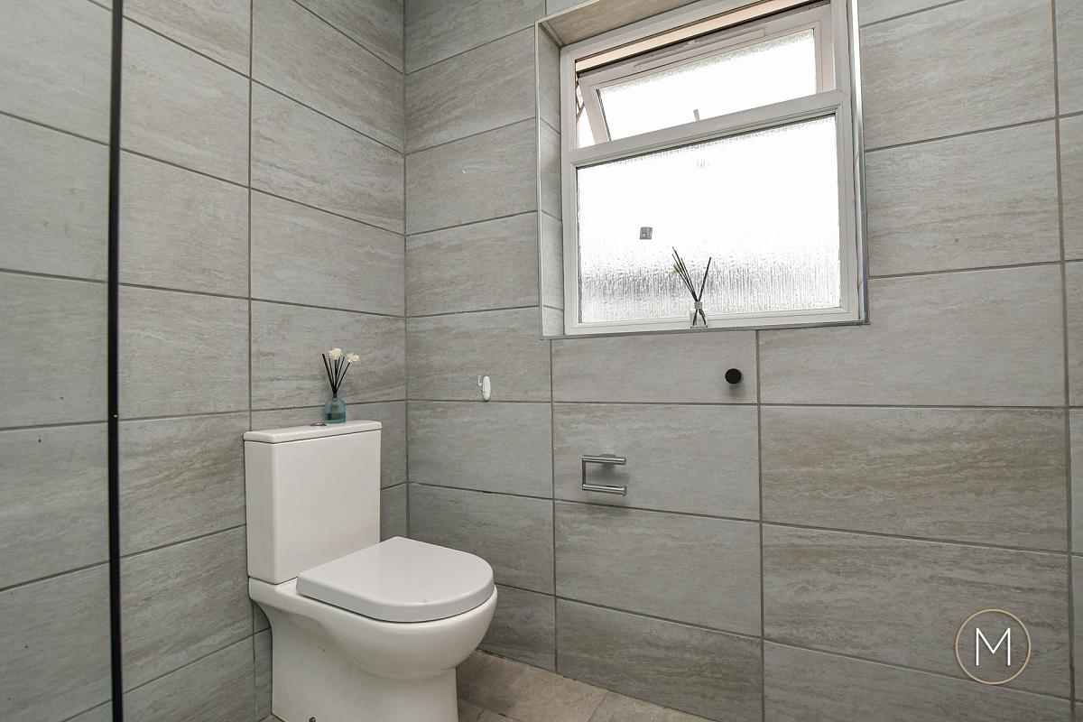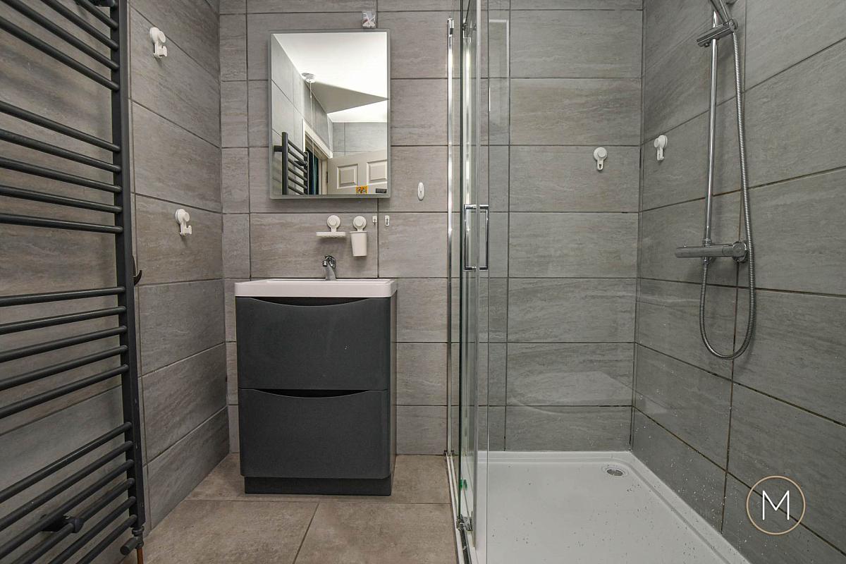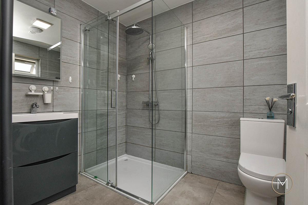 A recently updated, fully tiled ground-floor shower room offers modern luxury and practicality.